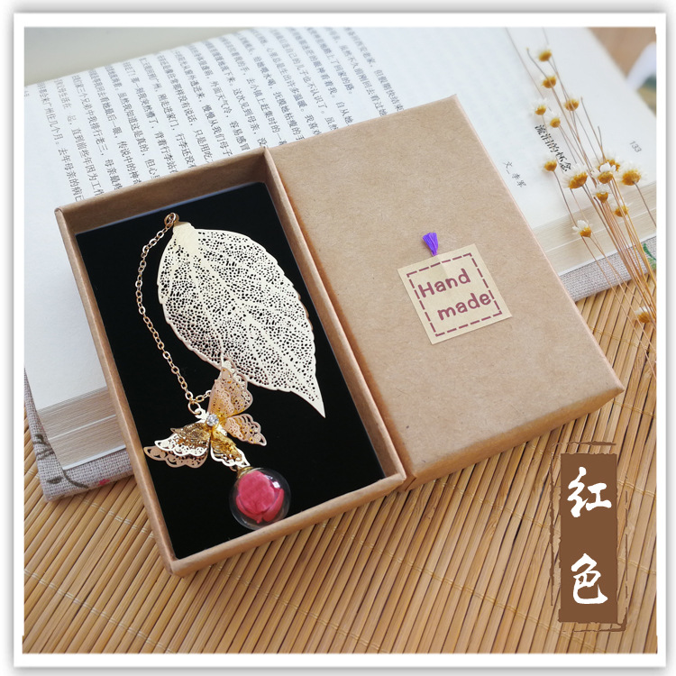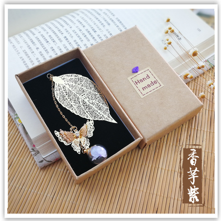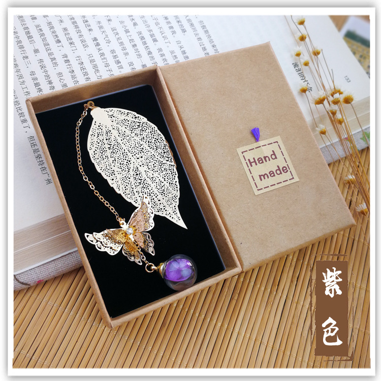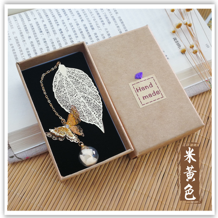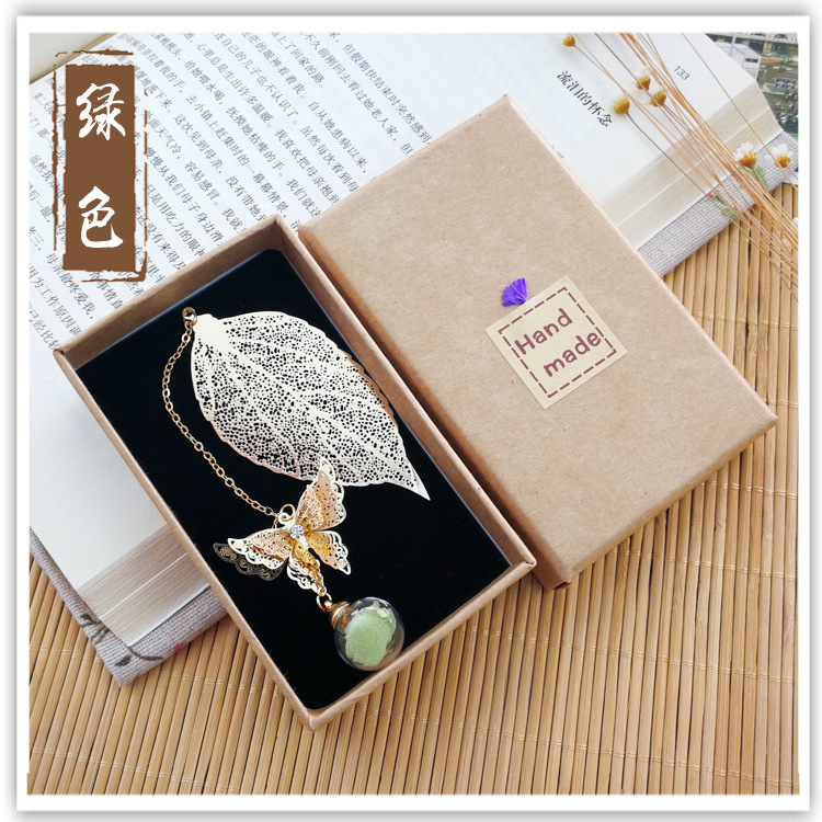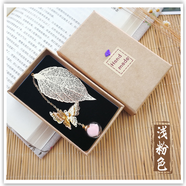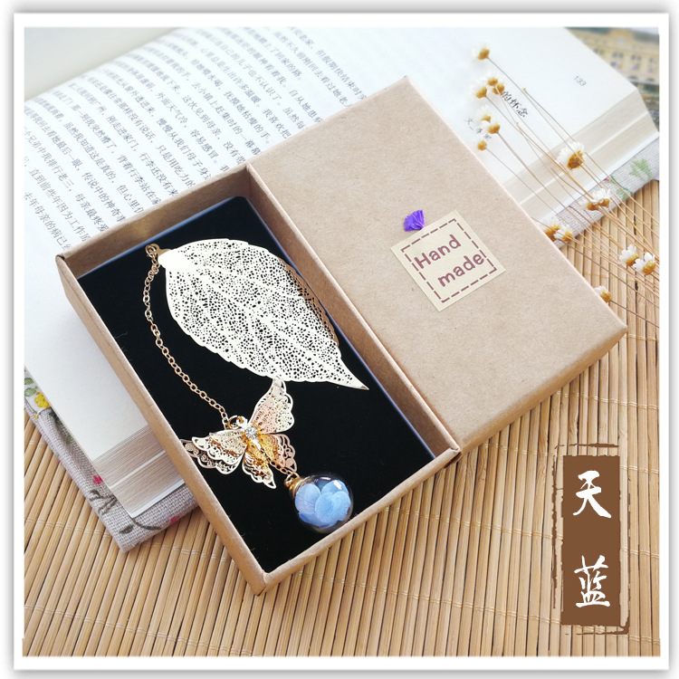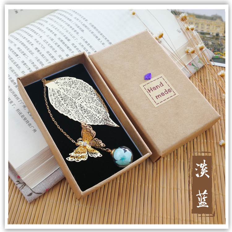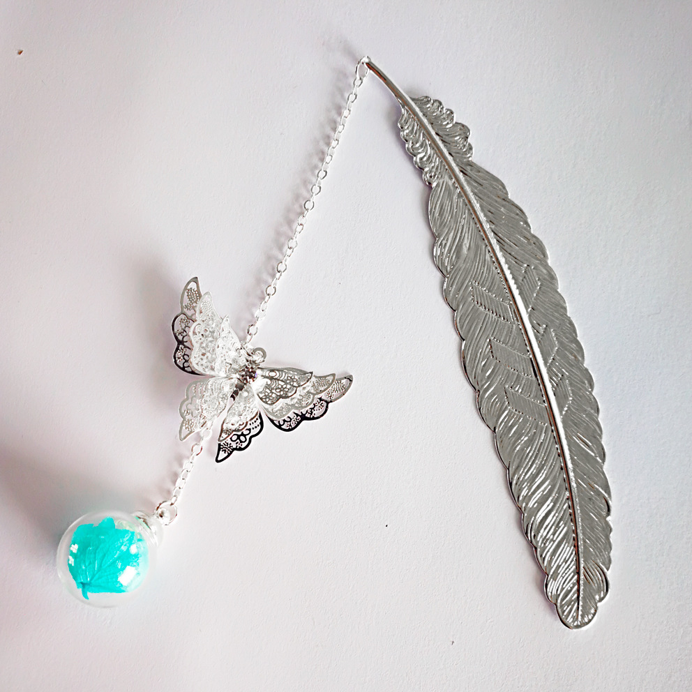 品名:镀银叶子书签 (蝴蝶+叶子+绣球花)