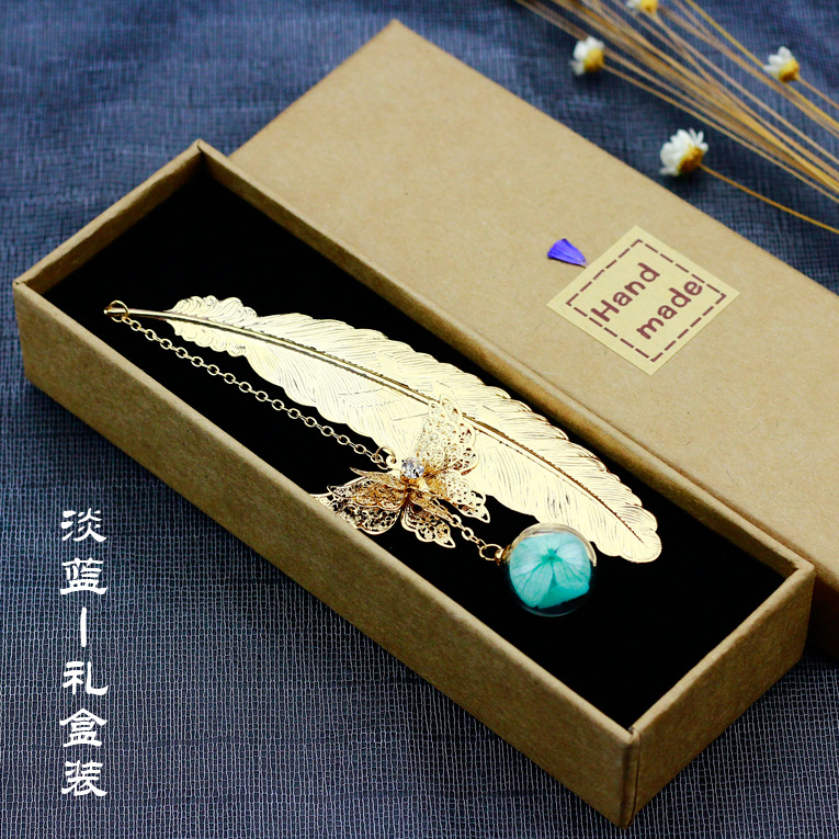 Креативная металлическая трехмерная Закладка с перьями в древнем китайском стиле цветок гортензии вечный цветок подарок школьные принадлежности подарок