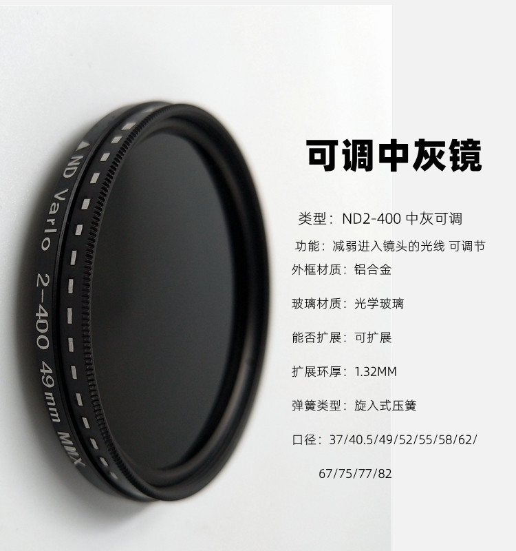 减光镜(灰度镜)系列(适用于白天使用大光圈或低速快门,制造特殊效果)