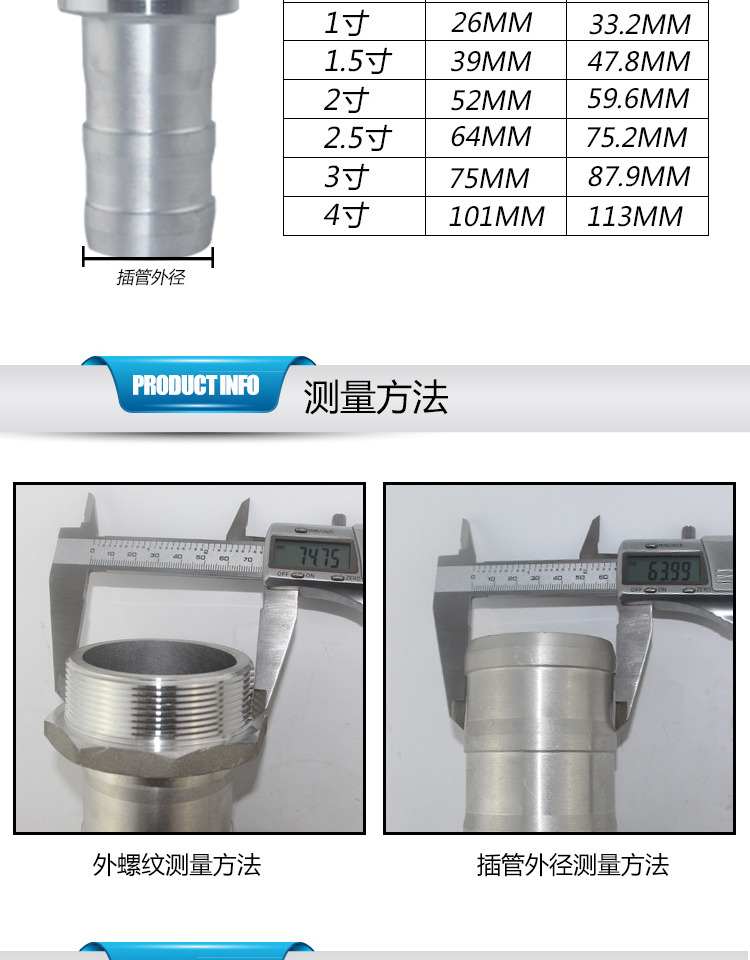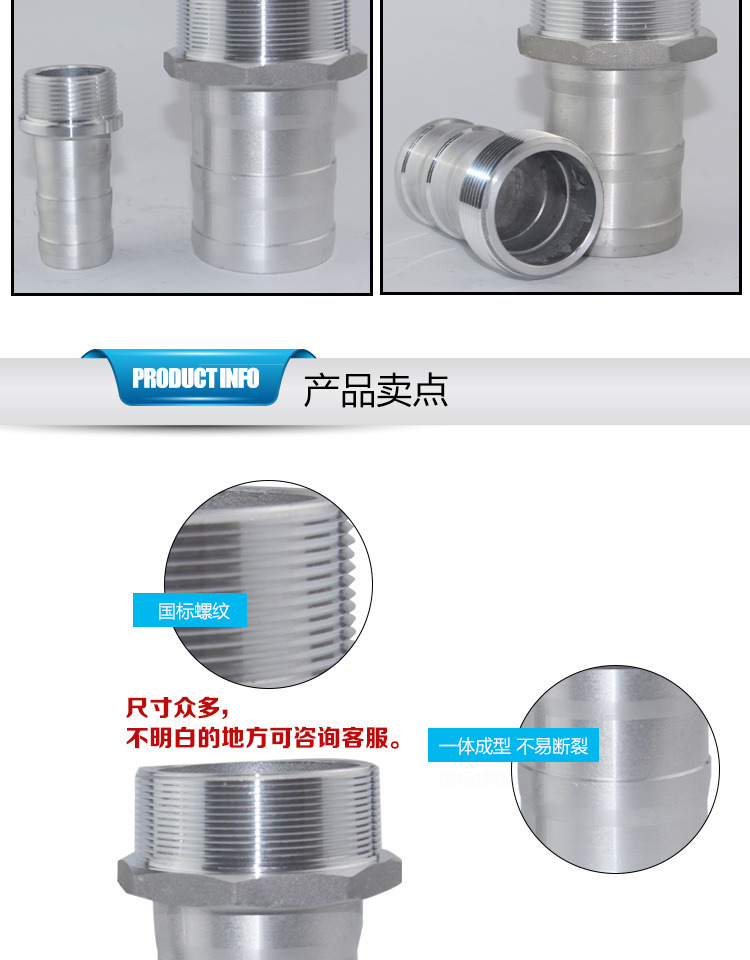 Пагода соединение внешняя резьба Быстроразъемное соединение 1 дюйм 1,5 дюйма 2 дюйма 2,5 дюйма 3 дюйма 4 дюйма Трубное соединение из алюминиевого сплава