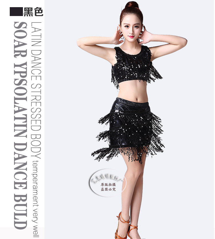 Юбка для латинских танцев Одежда для соревнований блестками лакированная кожа танцевальная одежда сценическая одежда танец юбка с кисточками костюм