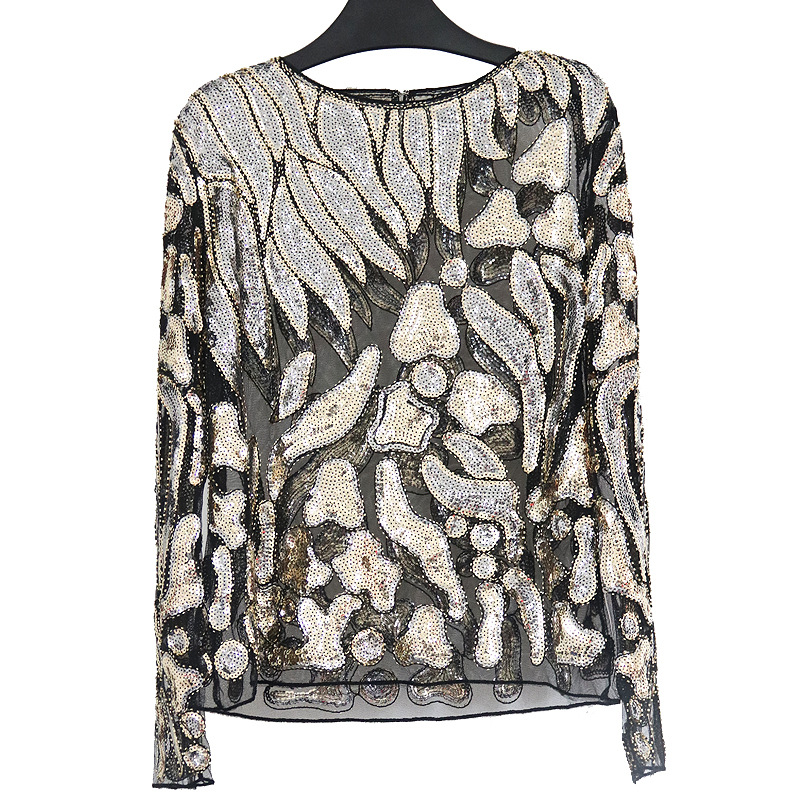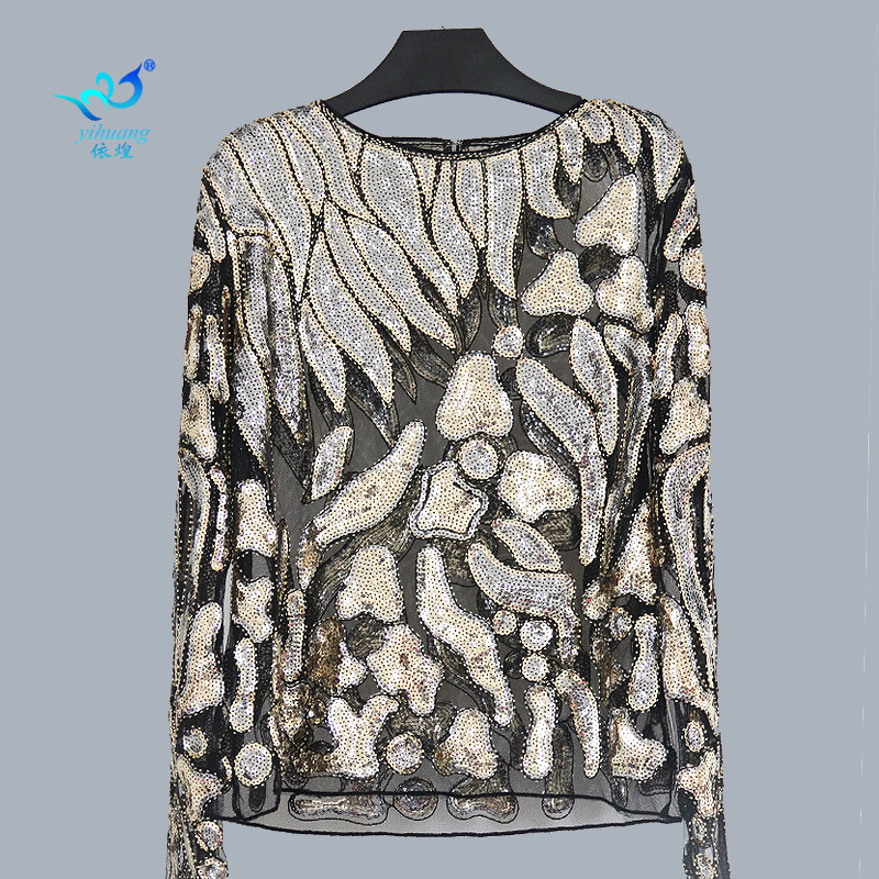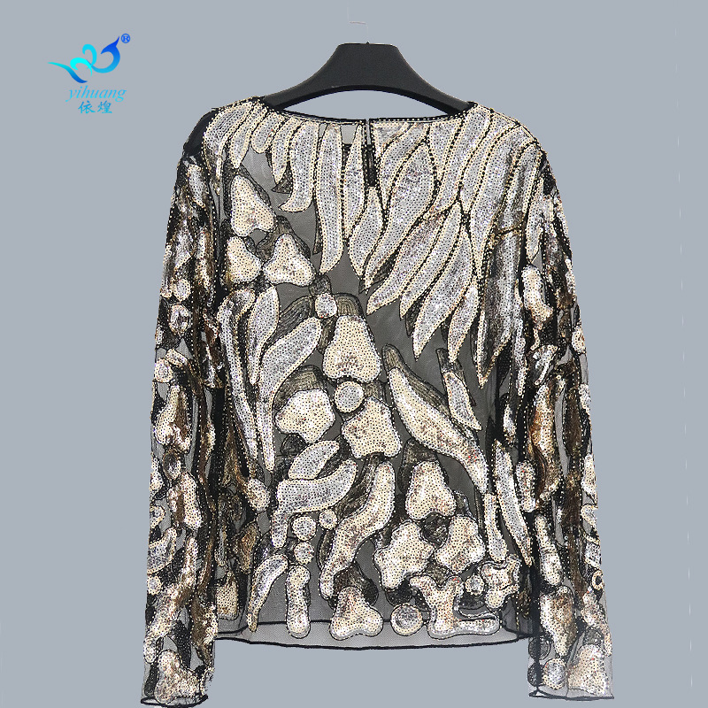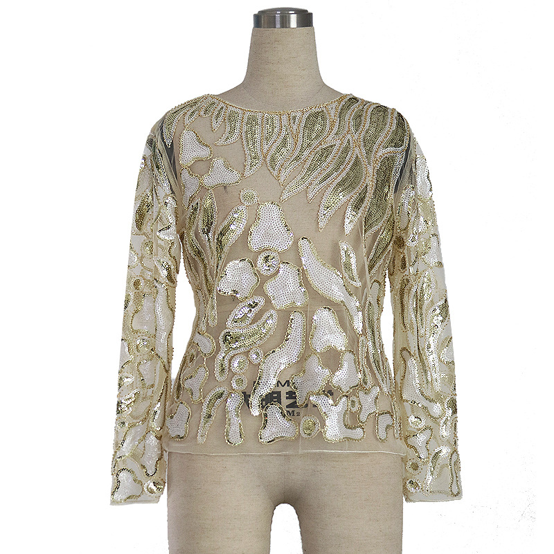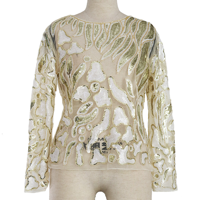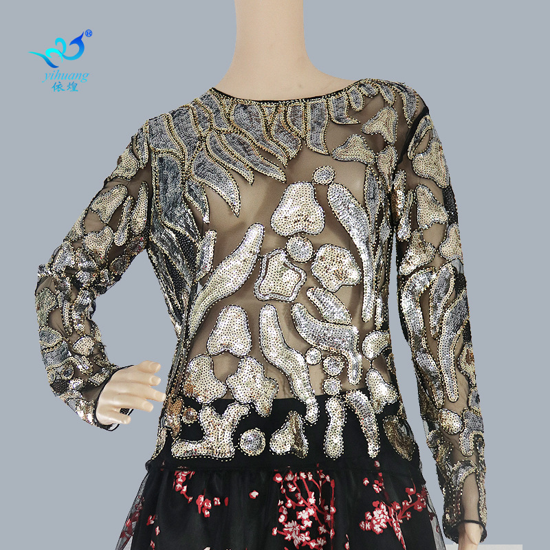 Женская групповая исполнительская одежда с блестками Танцевальная одежда Перспектива сетчатой пряжи с длинными рукавами