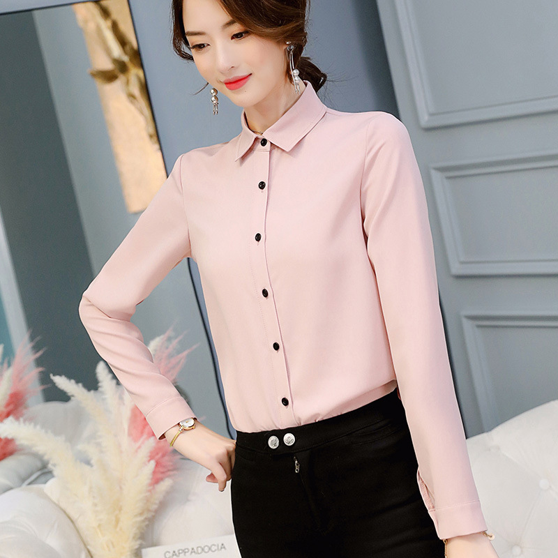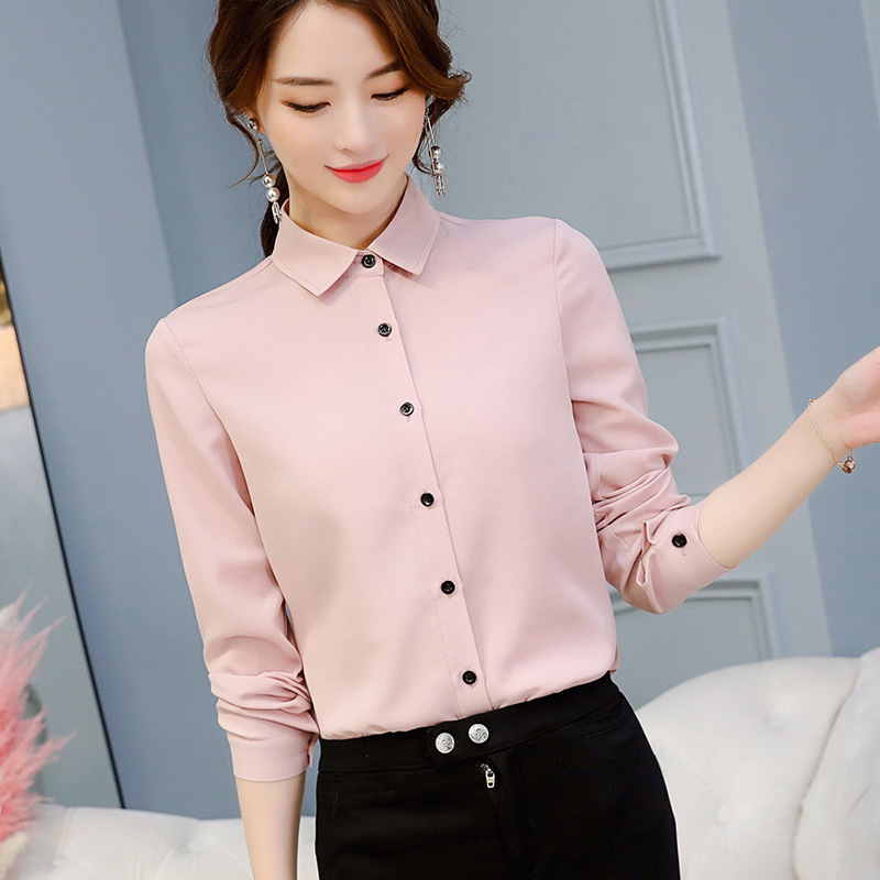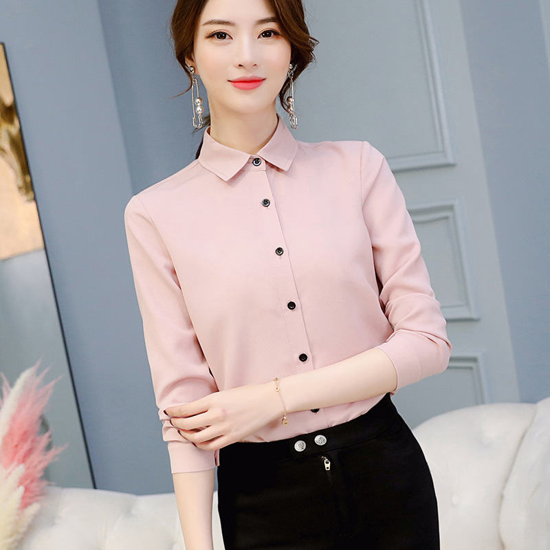 Новая женская шифоновая рубашка Cai Dai Fei весна-лето 2025 в корейском стиле, однотонная, с длинным рукавом, стройнящая, модная, больших размеров, повседневная