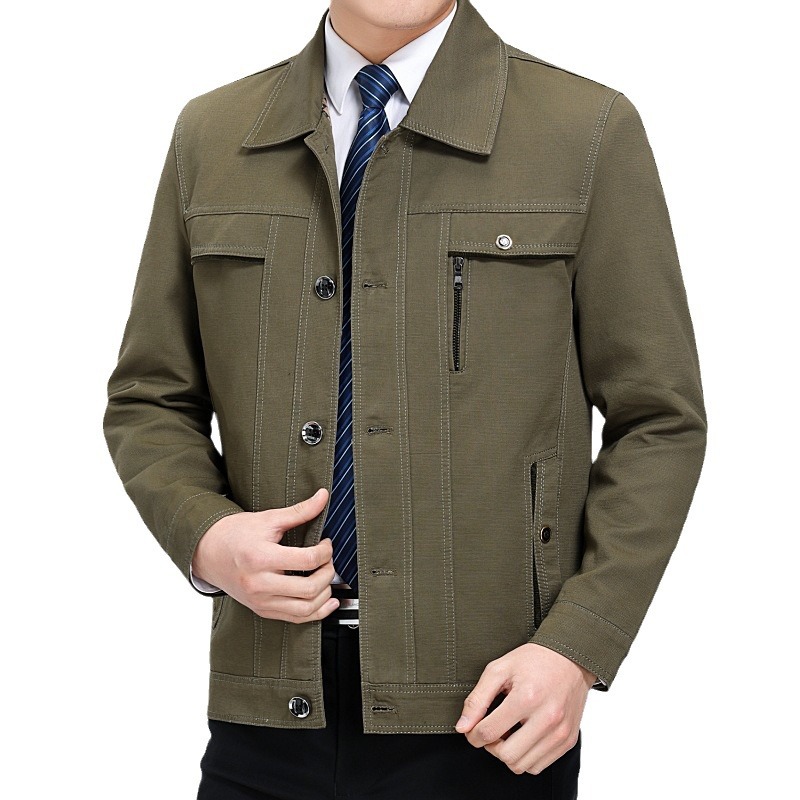 Осенняя новинка: мужская тонкая куртка, куртка из чистого хлопка с отложным воротником для мужчин среднего и старшего возраста, наряд для папы