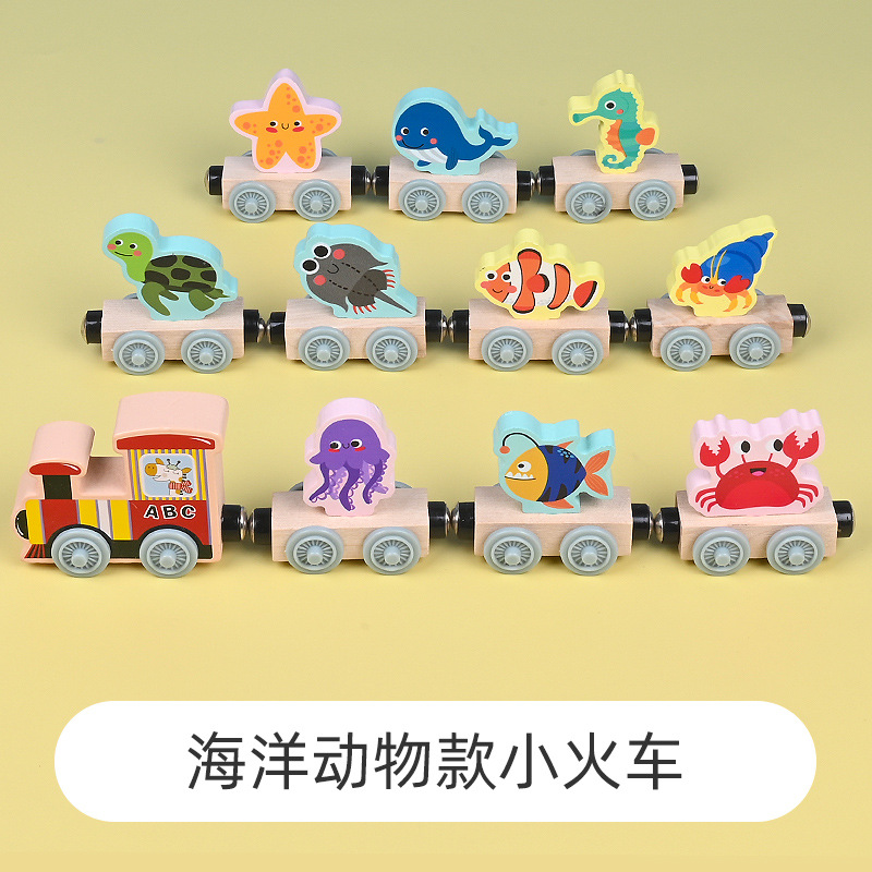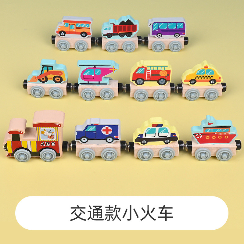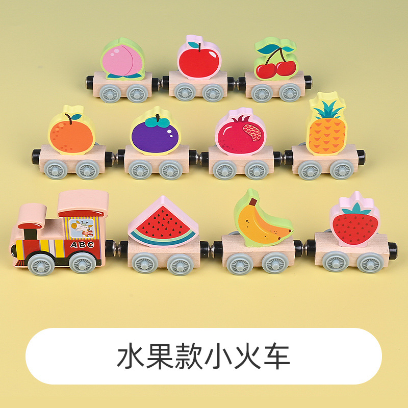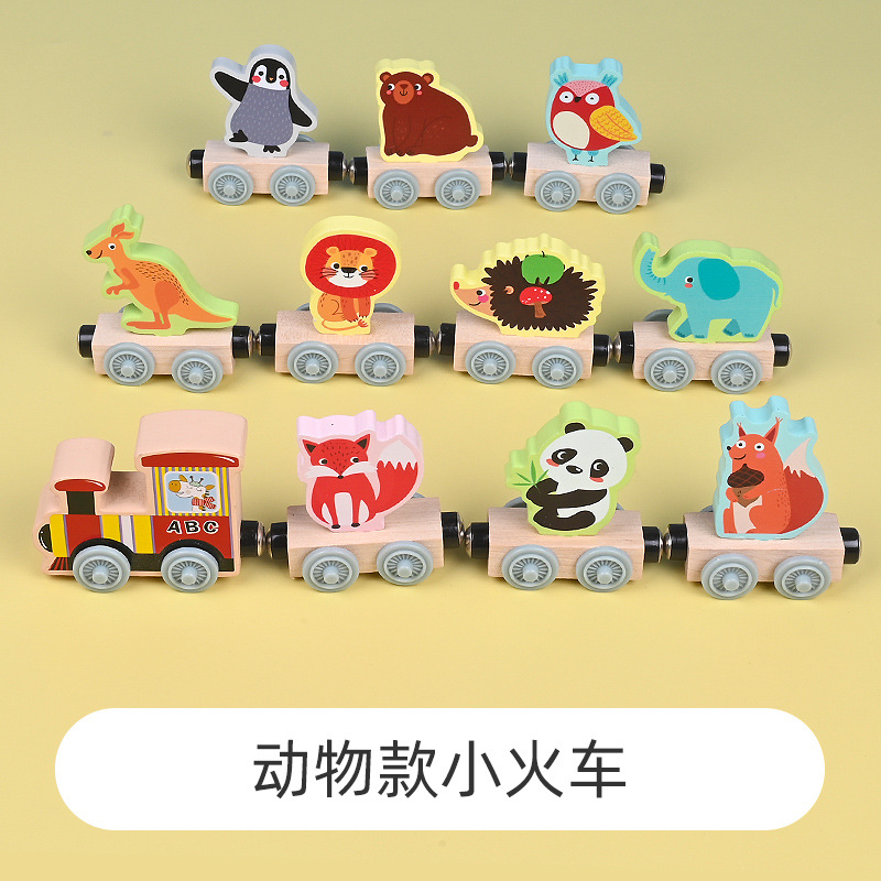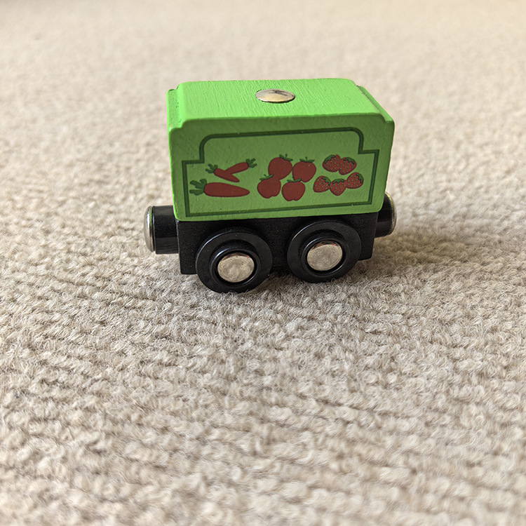小火车除17号和18号两节车头头部不带磁性,其他所有都是两头带有磁吸,可以相互连成一串,无回力,不装电池,手动前后推着开的,木制安全环保。
