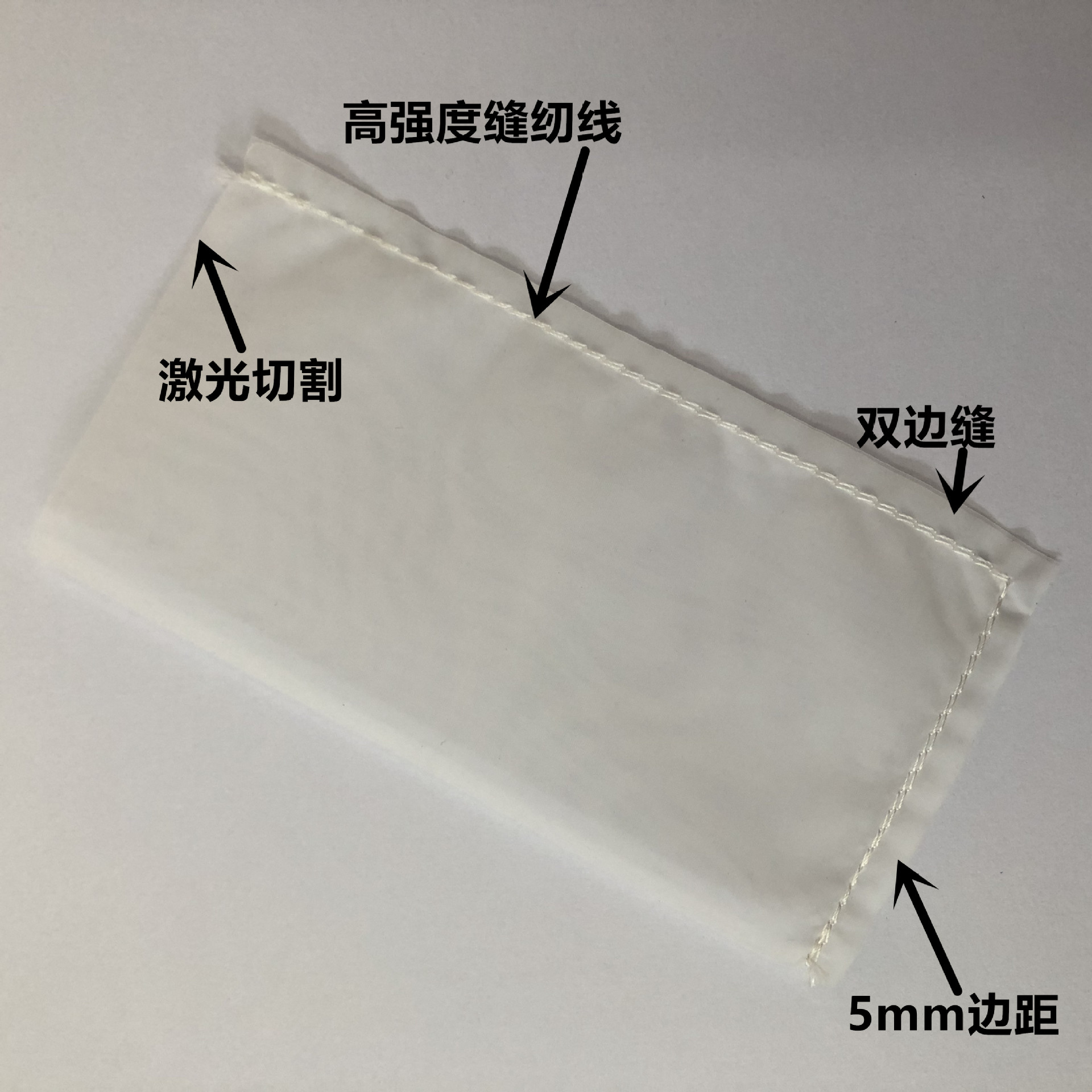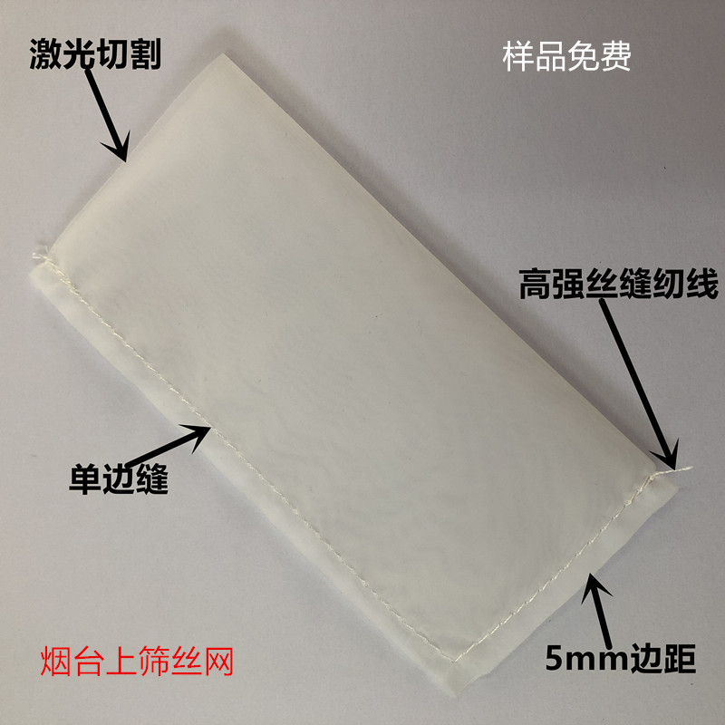 我们产品有多种加工方法,图片显示是缝线加工,另外还有包边加工及超声波焊接,客户可由选择,尺寸、规格、式样、标签均可定制。网布目数大小可以选择。网纱网孔均匀过滤效果佳,可以多次清洗使用不变形。是过滤松香好的选择,我们的产品是食品级安全滤袋生产,出口欧美国家以及东南亚国家。请放心购买使用。