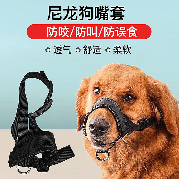 Ошейник для рта для домашних животных, кожаная крышка для защиты от укусов, нейлоновый пояс, крышка для шеи, крышка для рта