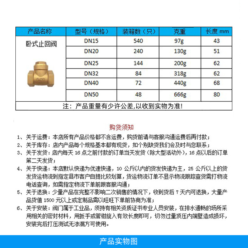 DN15(4 балла) Средний 85 г; DN15(4 балла) 97 г; DN20(6 баллов) 130 г; DN25(1 дюйм) Средний 185 г; DN25(1 дюйм) 205 г; DN32 (1,2 дюйма); DN40 (1,5 дюйма); DN50(2 дюйма); DN65 (2,5 дюйма)
