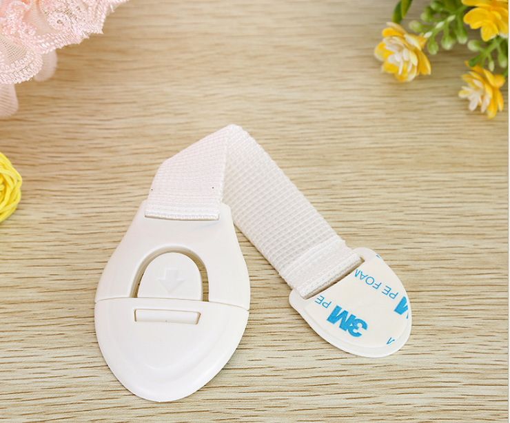 2、买了个安全锁,粘上后宝宝一拉胶就开了,锁掉了下来;