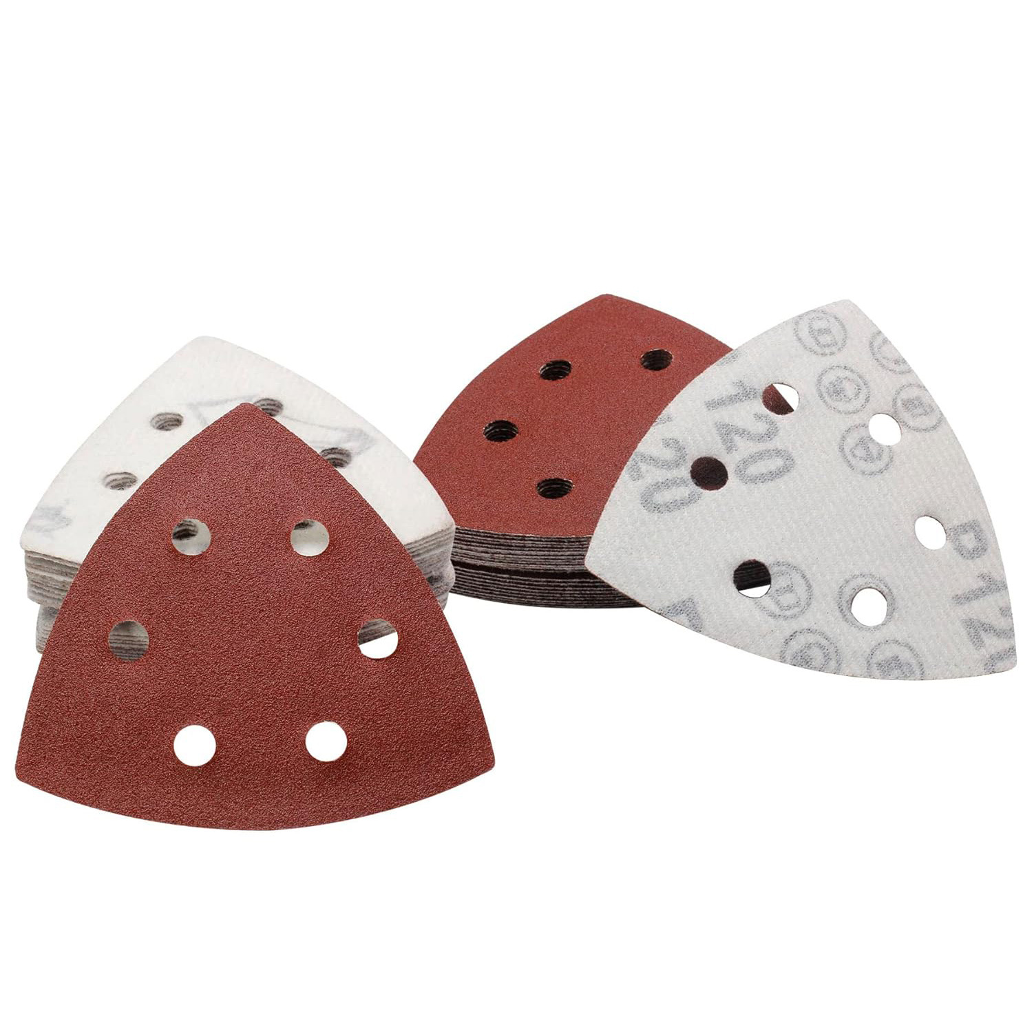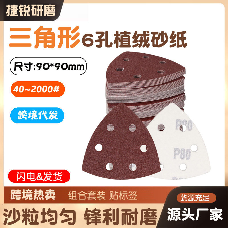 Трансграничная треугольная наждачная бумага, красный песок, флокированный матовый самоклеящийся треугольный шлифовальный диск, 6 отверстий, 90*90*90 мм, поставка