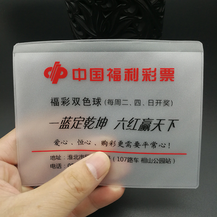 彩票袋一般规格 12*9.5cm 11.5*9.5cm 分单卡位 或者双卡位 可以彩色印刷或者丝网印刷