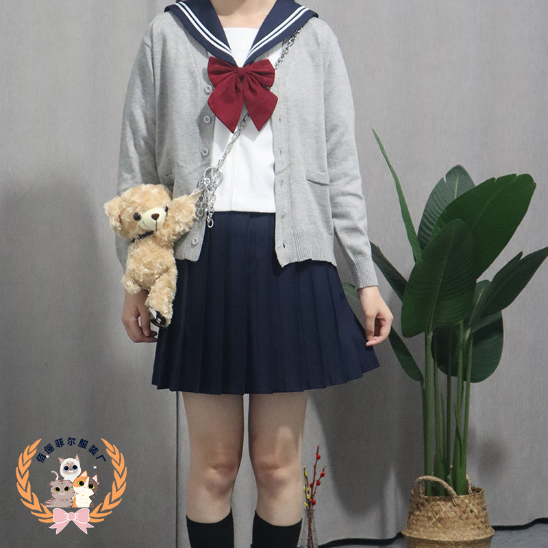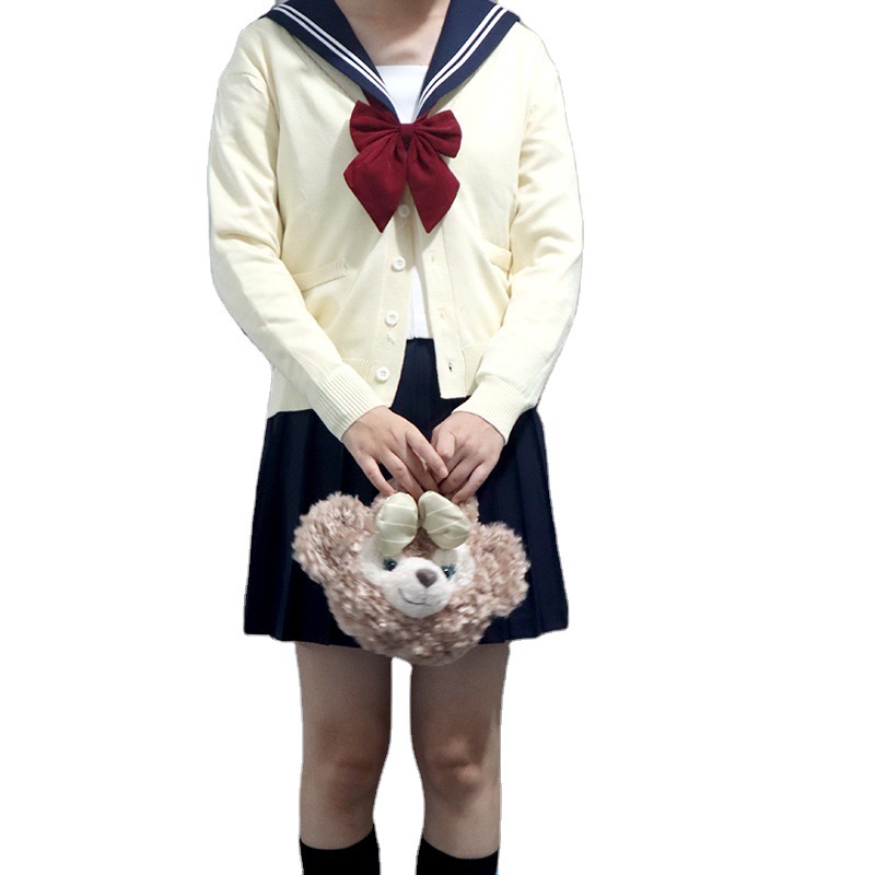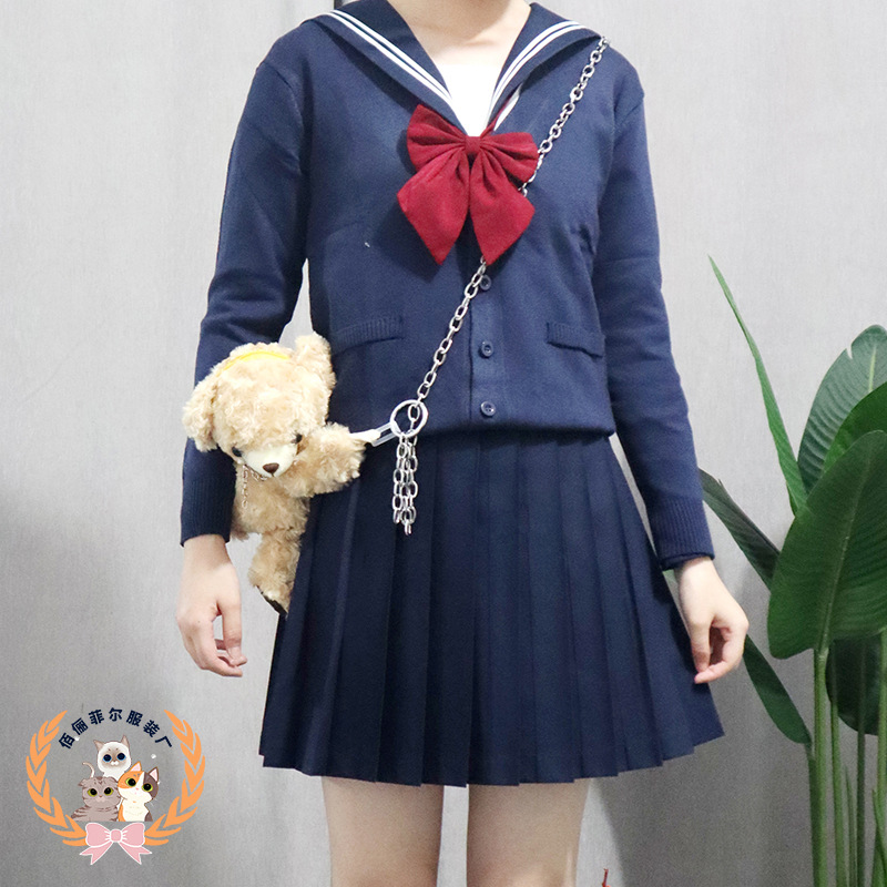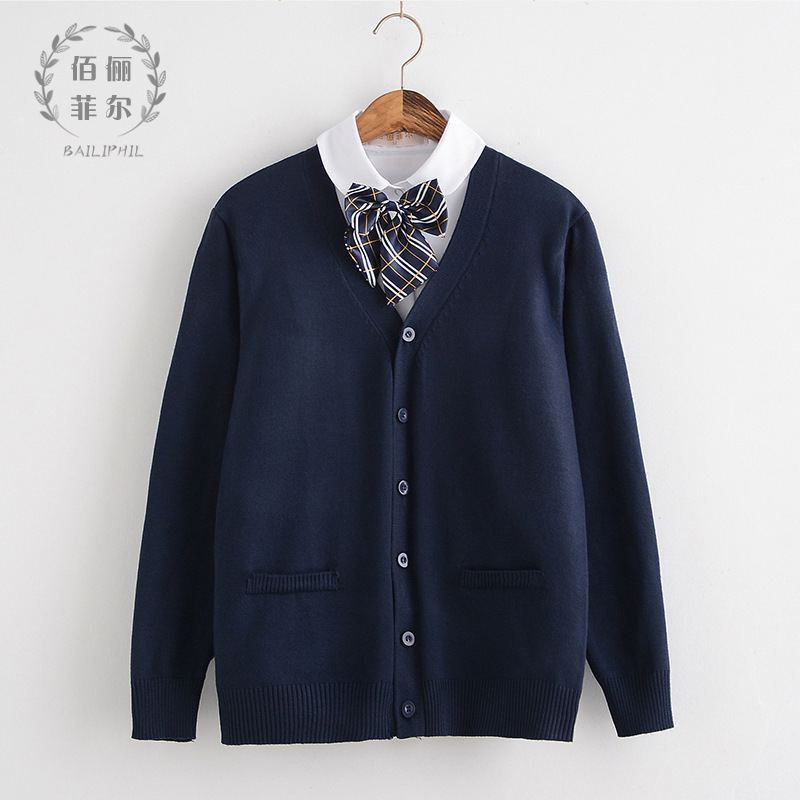 Японский Кардиган Свитер Колледж Стиль Униформа Свитер Длинный Рукав V-образным Вырезом Простой Вязаный Свитер Матросский Костюм Пальто