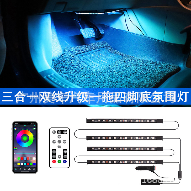 Автомобильный светодиодный декоративный свет красочный голосовой активируемый интерьер автомобиля Атмосфера свет ноги Атмосфера свет один перетащить четыре APP автомобиль ноги свет