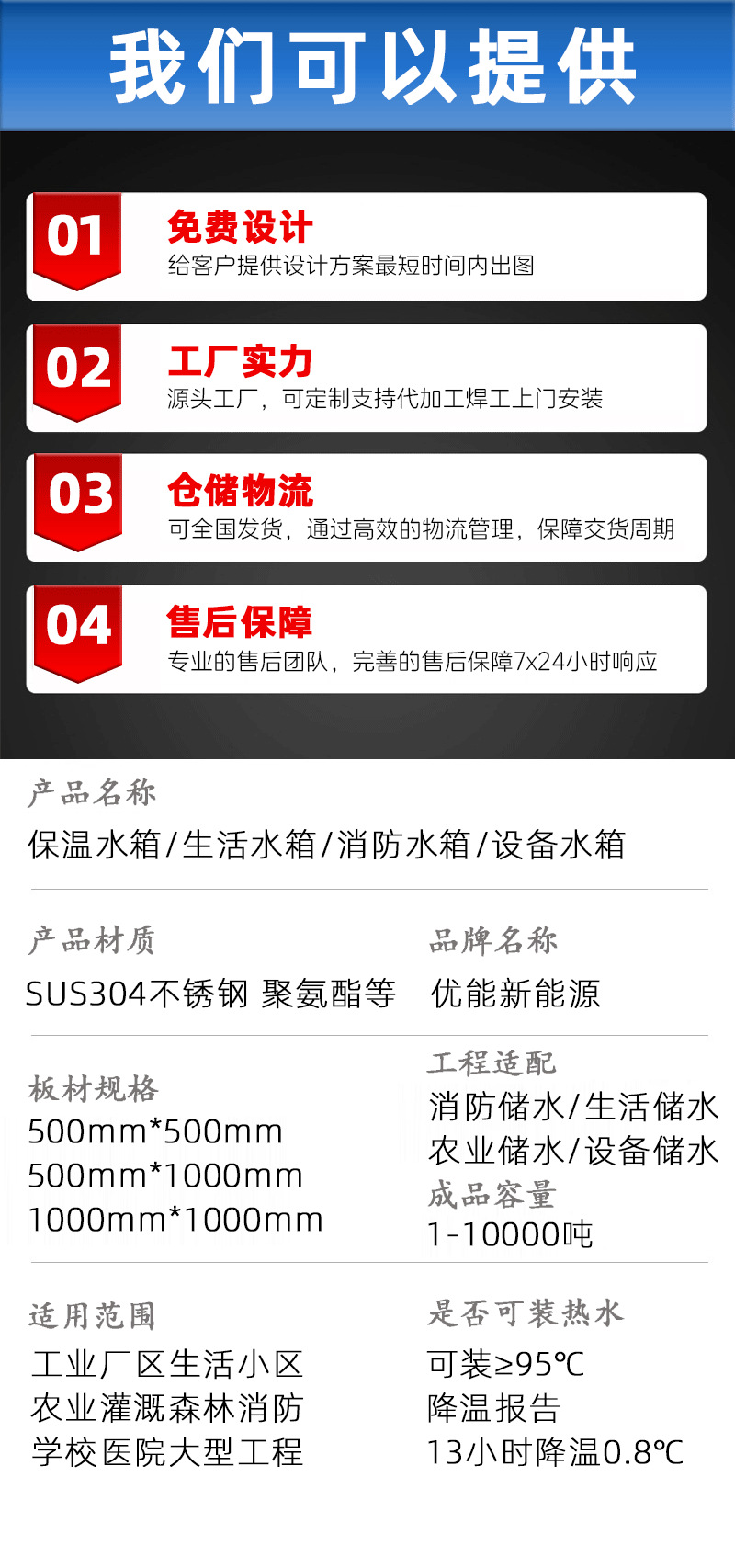 Квадратный резервуар для воды из нержавеющей стали 304, противопожарная изоляция, хранение воды, промышленный кондиционер, питьевая вода, большой резервуар для инженерной воды