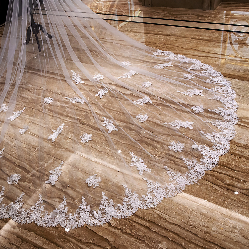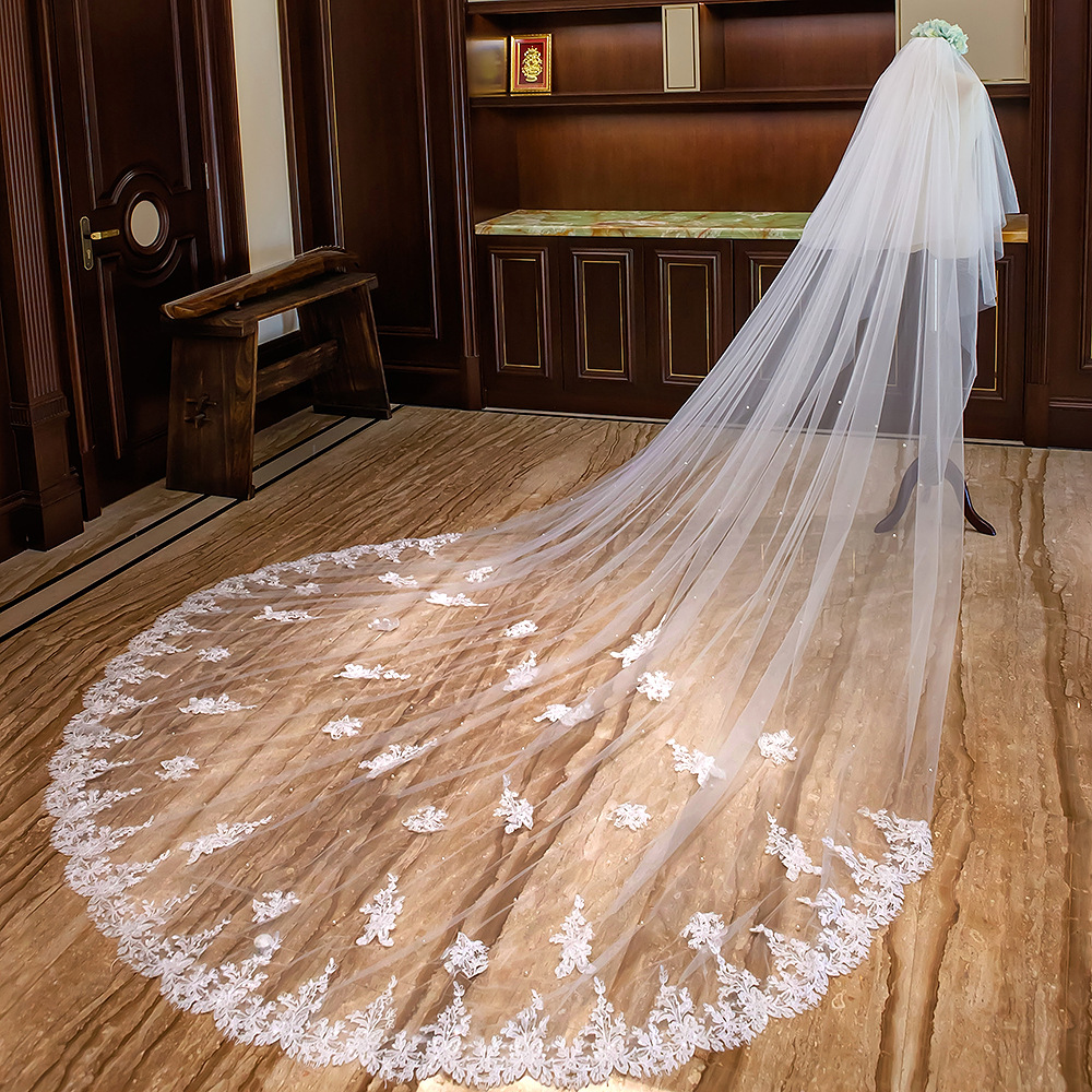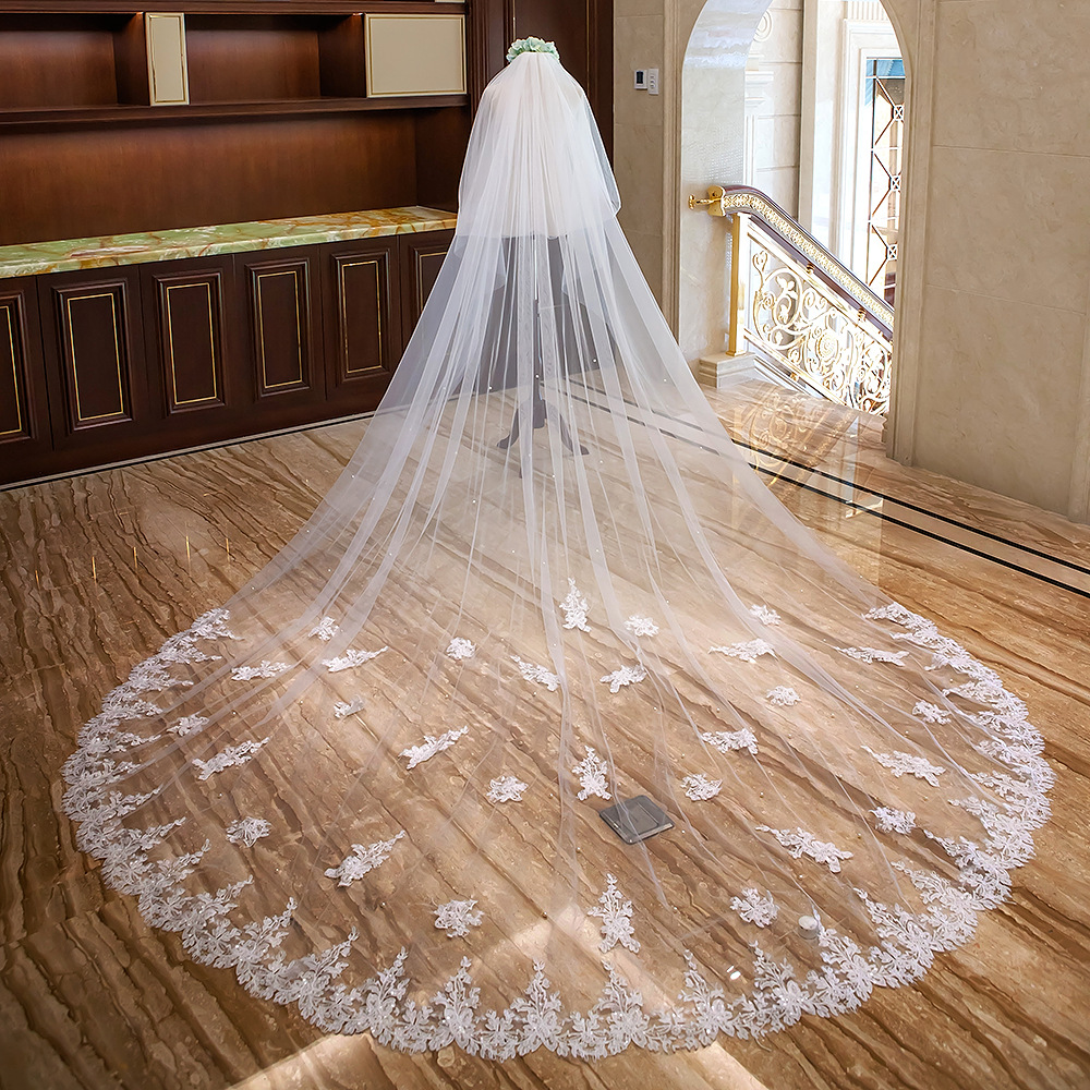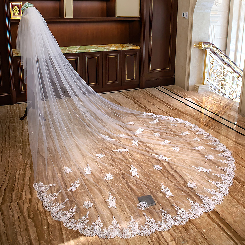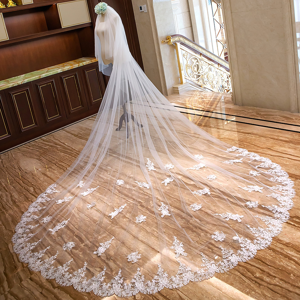 Новое корейское свадебное платье невесты, кружевная вуаль, Сверхширокая, 4 м, длинная, автофотосъемка, двухслойная Amazon для партии фотографий