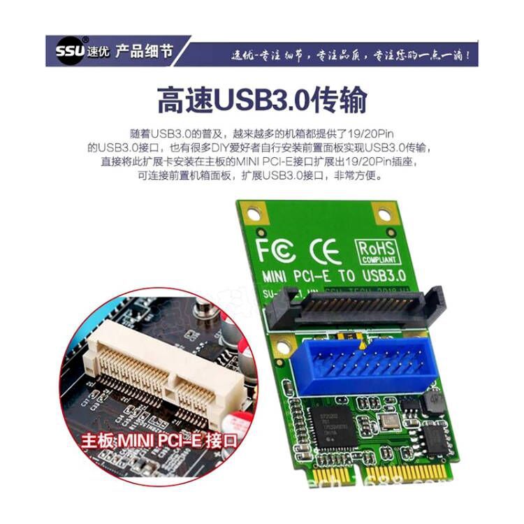 Карта расширения MINI PCI-E-USB3.0 от MINIPCI-E до переднего контактного порта USB3.0 19/20PIN