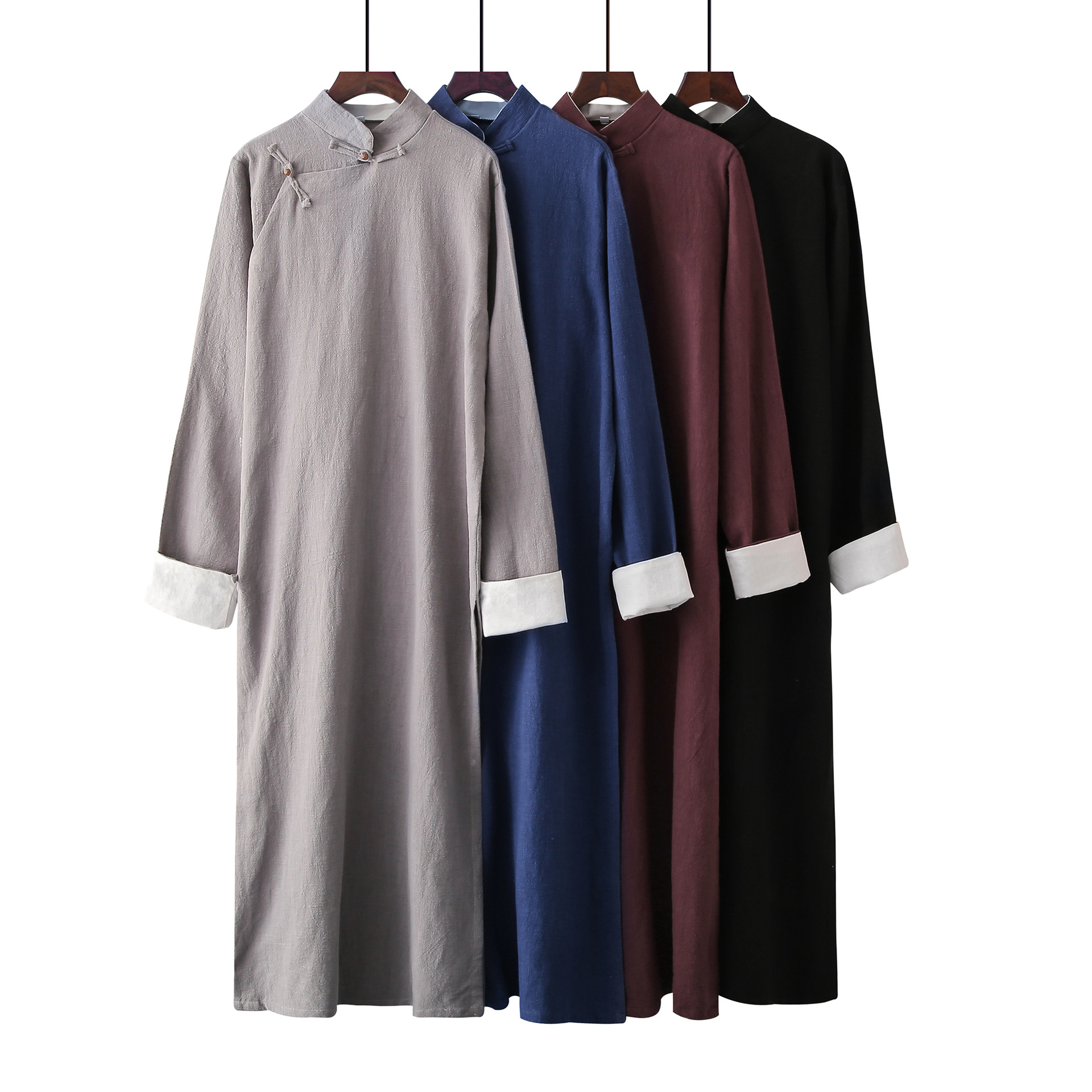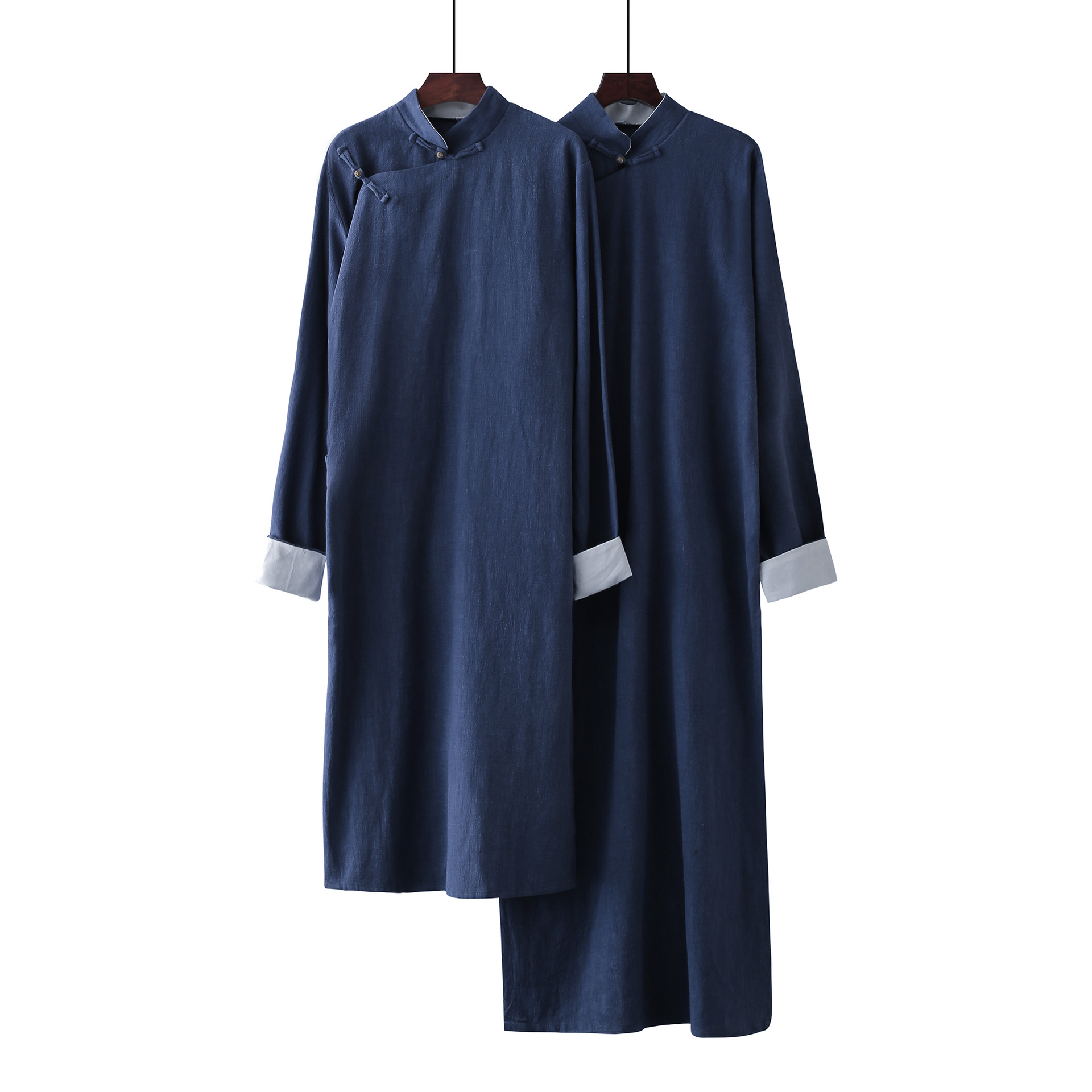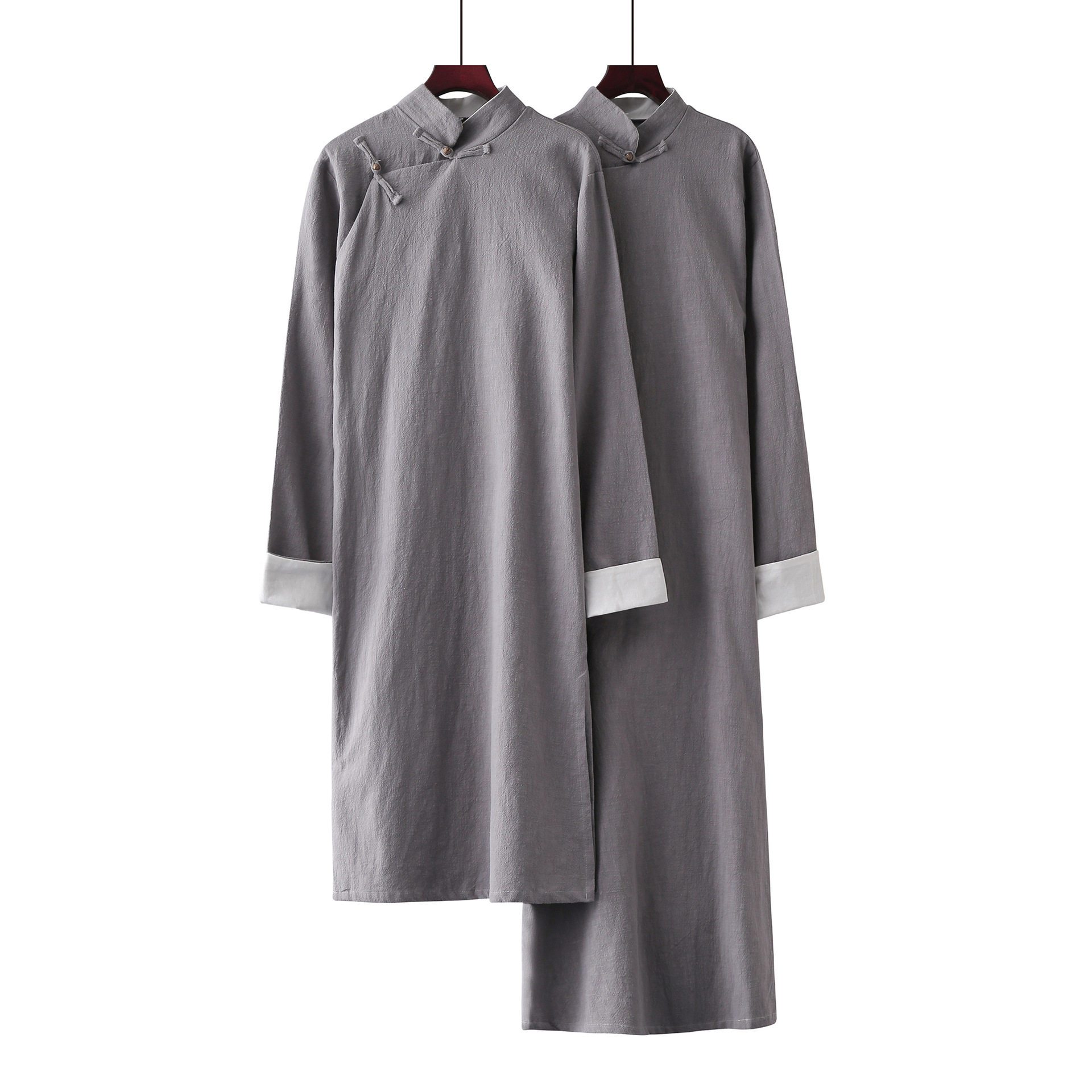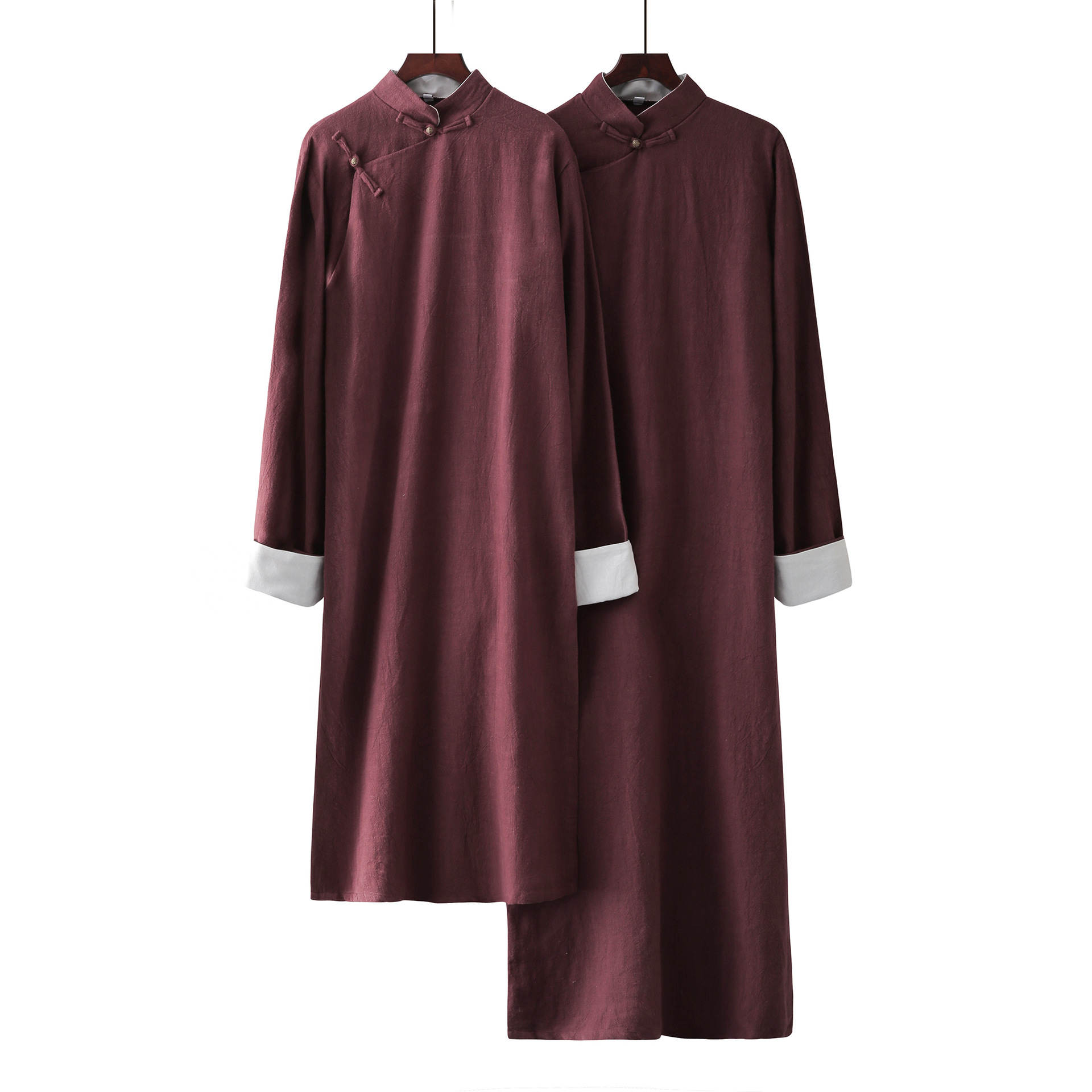 Длинная рубашка из хлопка и льна Мужская Республика Китай Длинное платье Мандариновое пальто Хлопок и лен Перекрестные помехи Большое платье Performance Art Ретро Китайское лучшее мужское платье