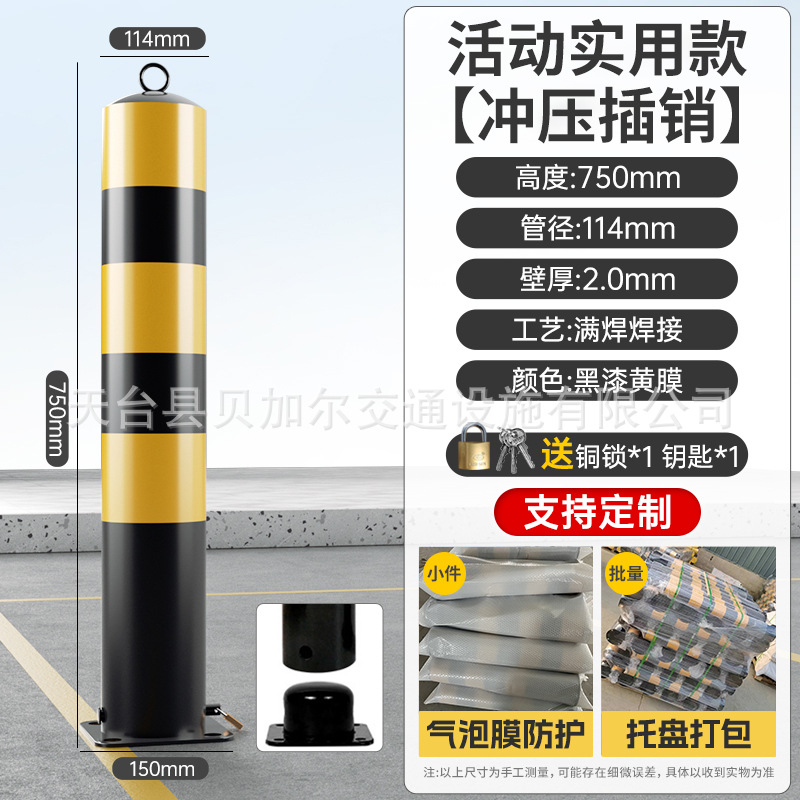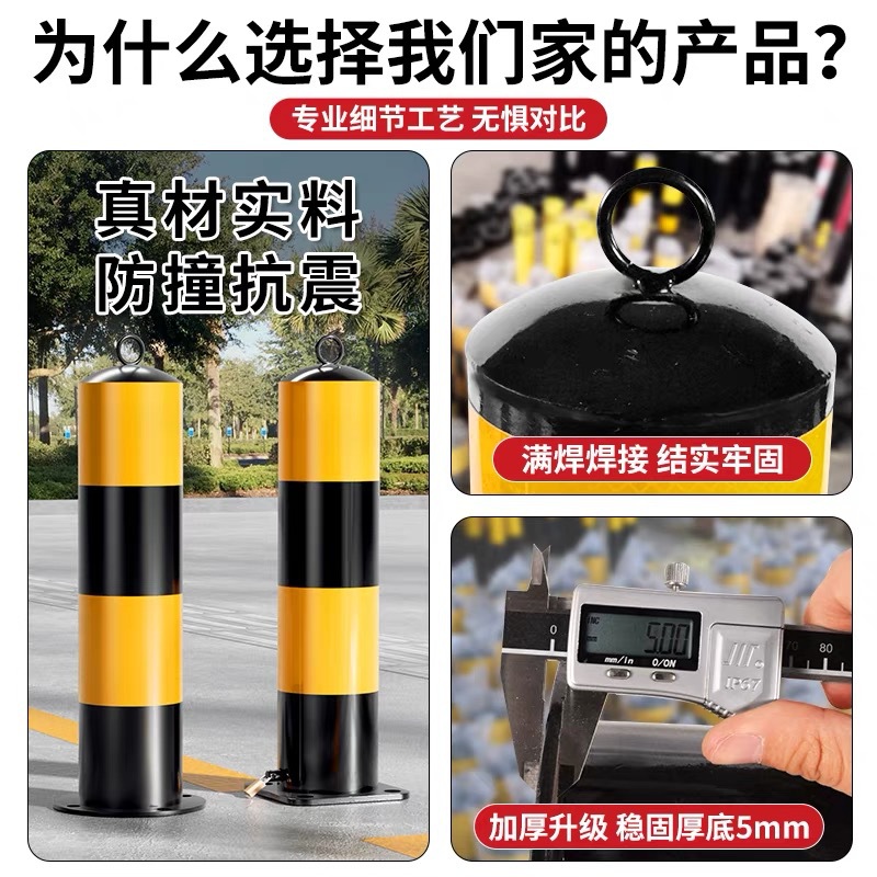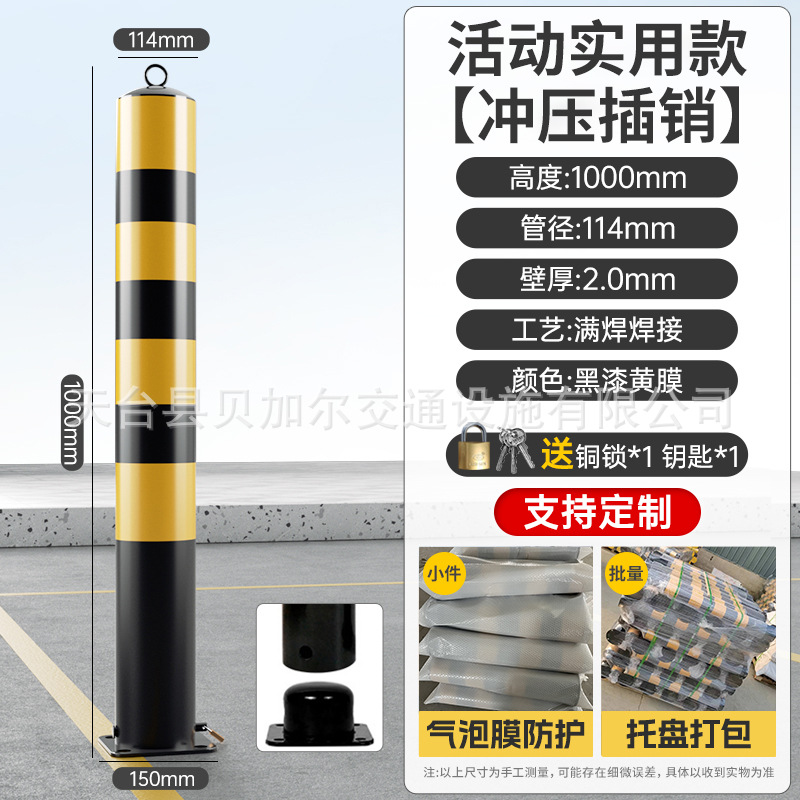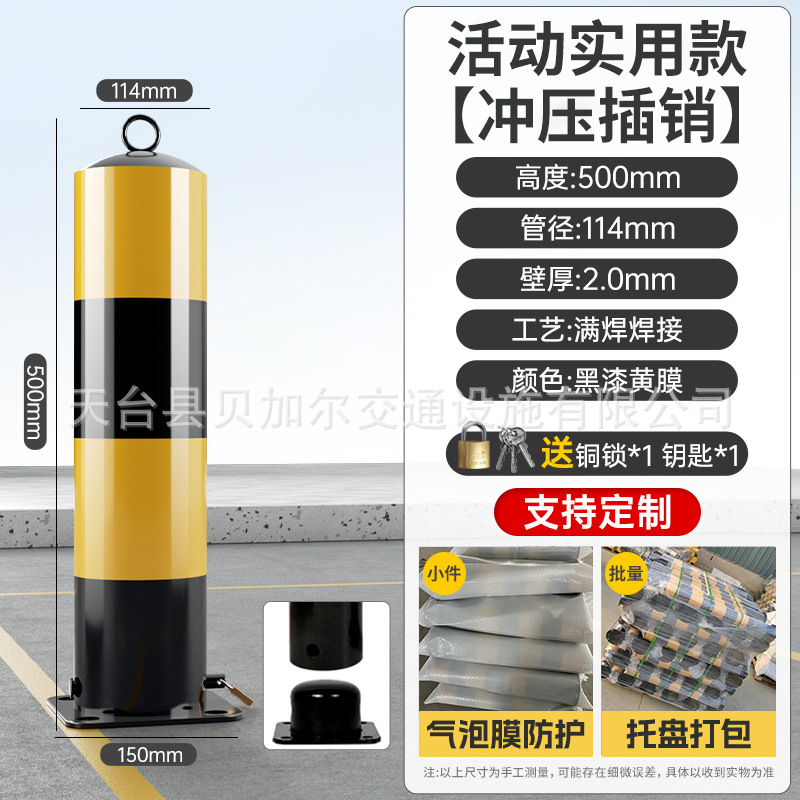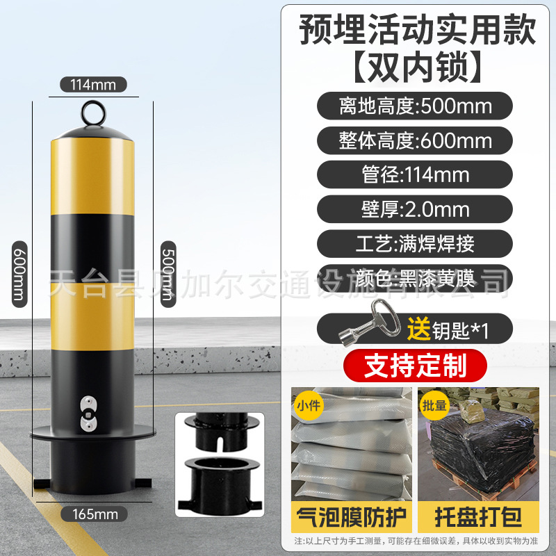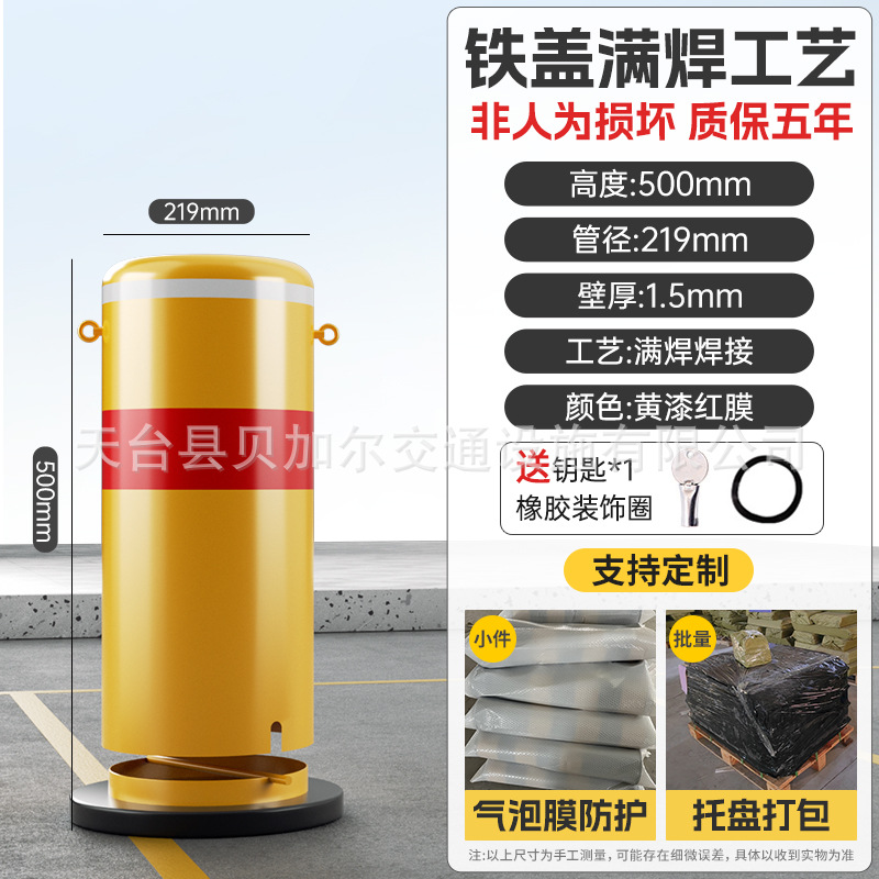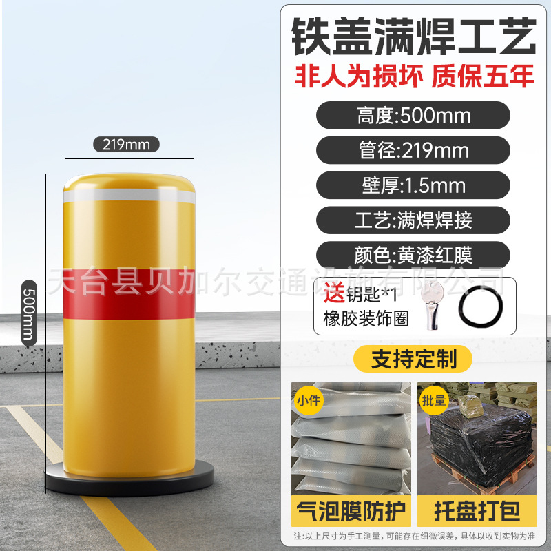 Утолщенная стальная труба, предупреждающая колонна, дорожная колонна для предотвращения столкновений, дорожный блокпон, подвижная колонна, съемная фиксированная стопка блокировки автомобиля