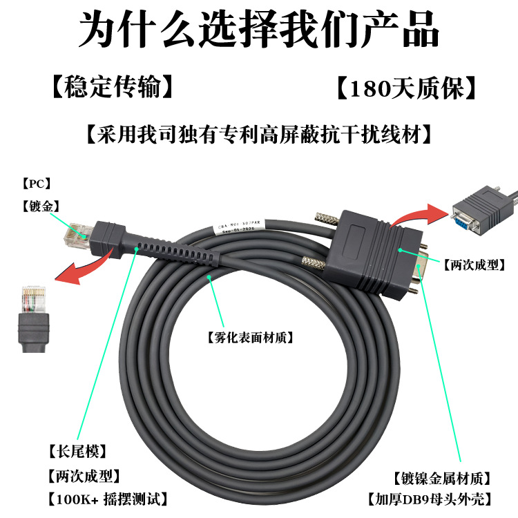 Применимо к символу Xunbao LS2208 6708 6878 4278 кабель для передачи данных сканирующего пистолета 3 м последовательный порт RS232