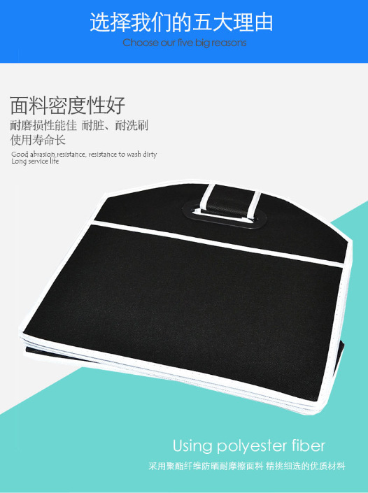 6.产品描述:隔成3个独立空间,外部设有多个口袋,充分利用空间和资源;袋子上有手提把,方便携带。不用时直接折叠存放不占地方