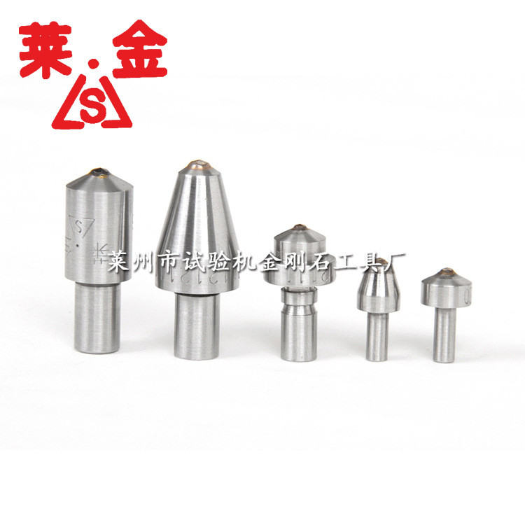 莱州市试验机金刚石工具厂是取得计量器具生产许可证的正规生产厂家(CMC量制鲁字06250117号),注册商标为【莱金】。本厂生产的金刚石压头种类包括:洛氏金刚石压头、维氏金刚石压头、显微金刚石压头、克努普金刚石压头、三棱锥玻氏金刚石压头、立方角金刚石压头、高温宝石压头、肖氏金刚石压头、超声波金刚石压头、非标金刚石压头等。