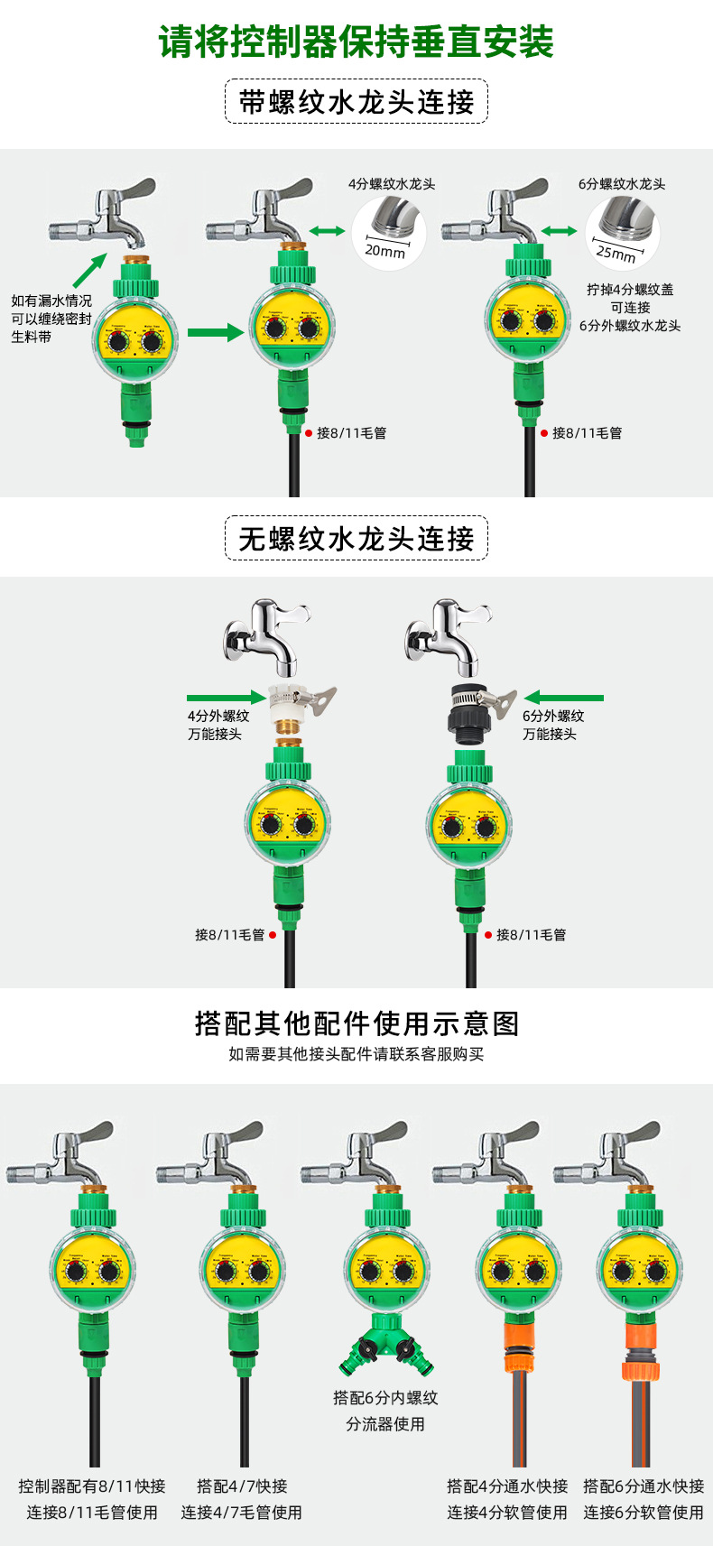 显示功能:液晶显示,标准时间,周一至周日,灌溉控制状况