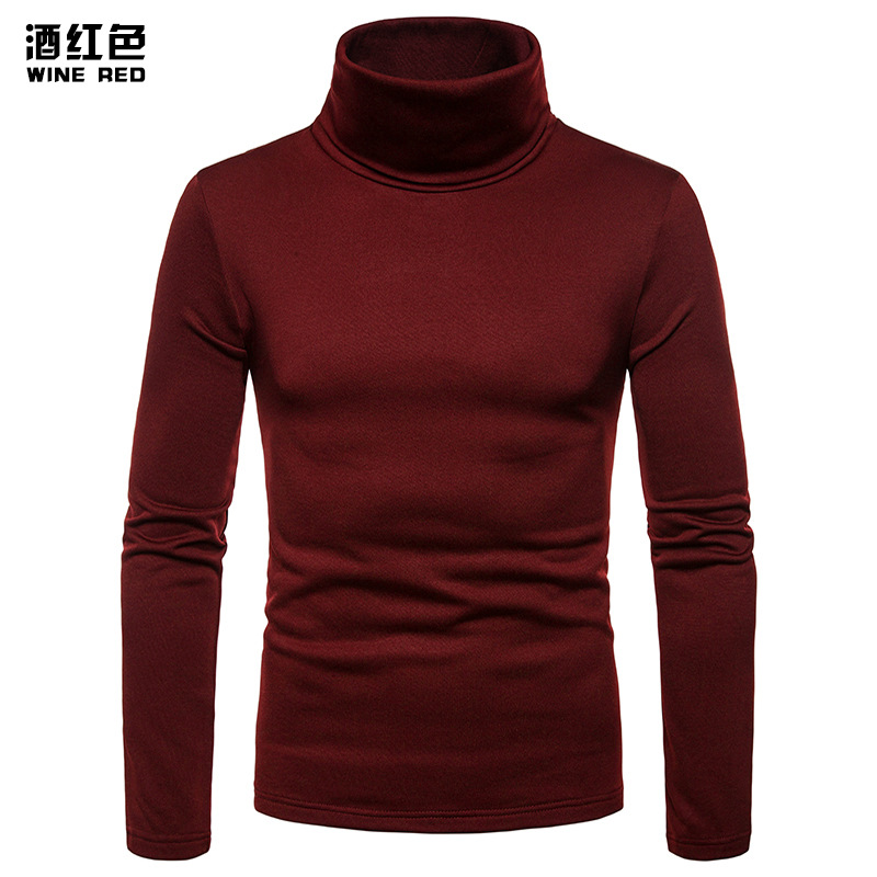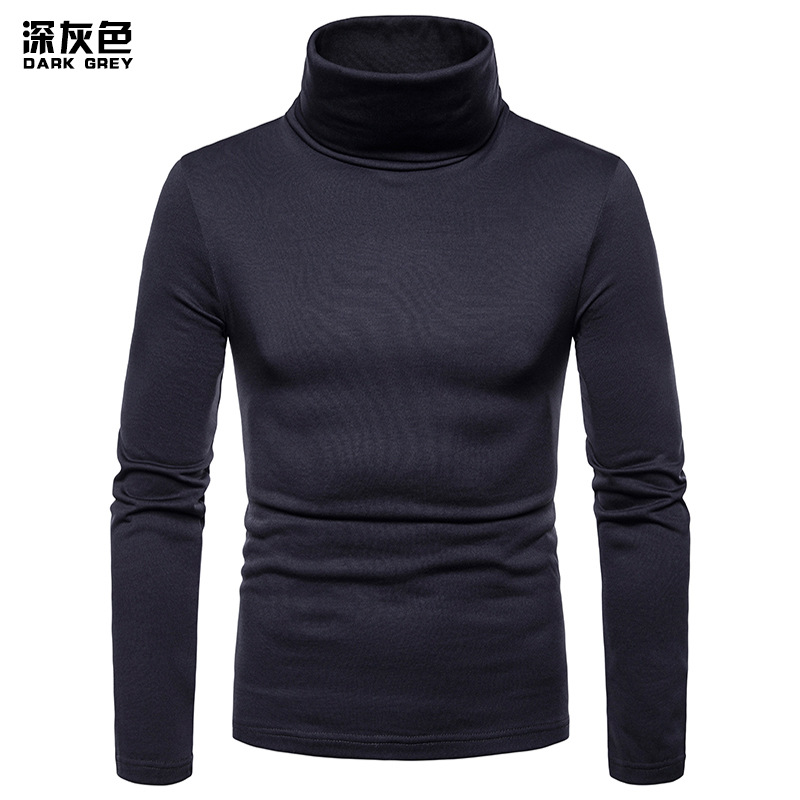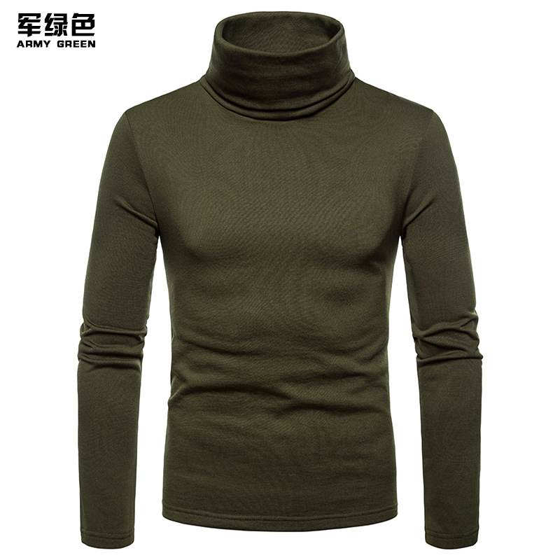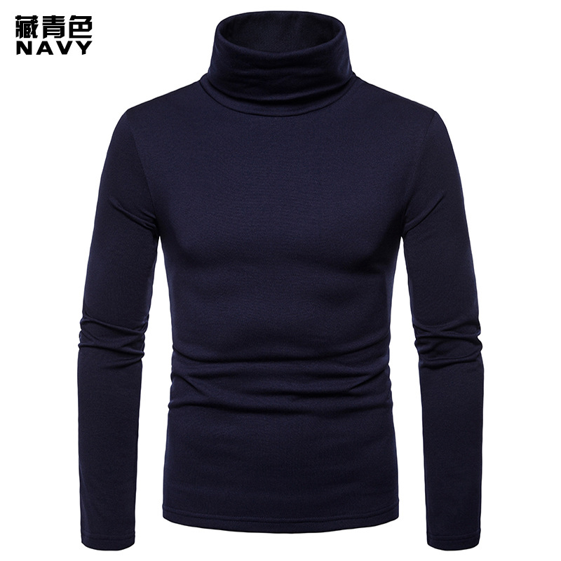 2021 осенне-зимняя Внешняя торговля новая мужская футболка европейского размера с высоким воротником и длинными рукавами на флисовой подкладке больших размеров, однотонная Базовая рубашка