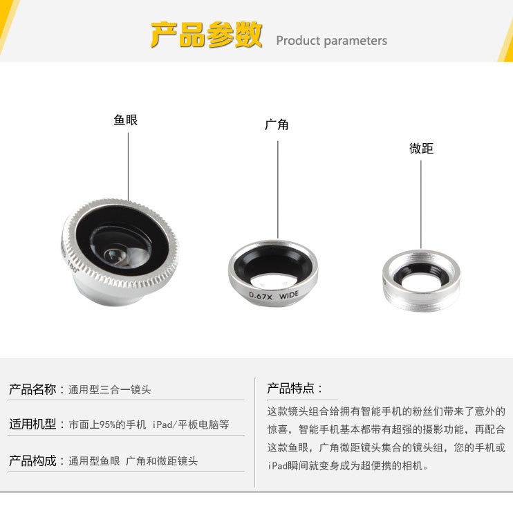 鱼眼三合一镜头: 带包装 万能夹子 鱼眼镜头 收纳袋