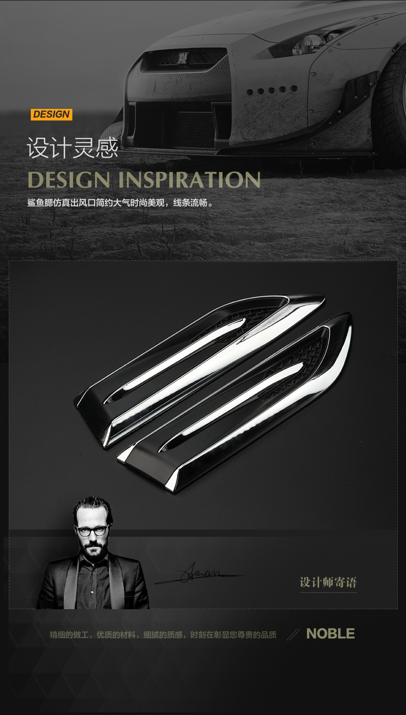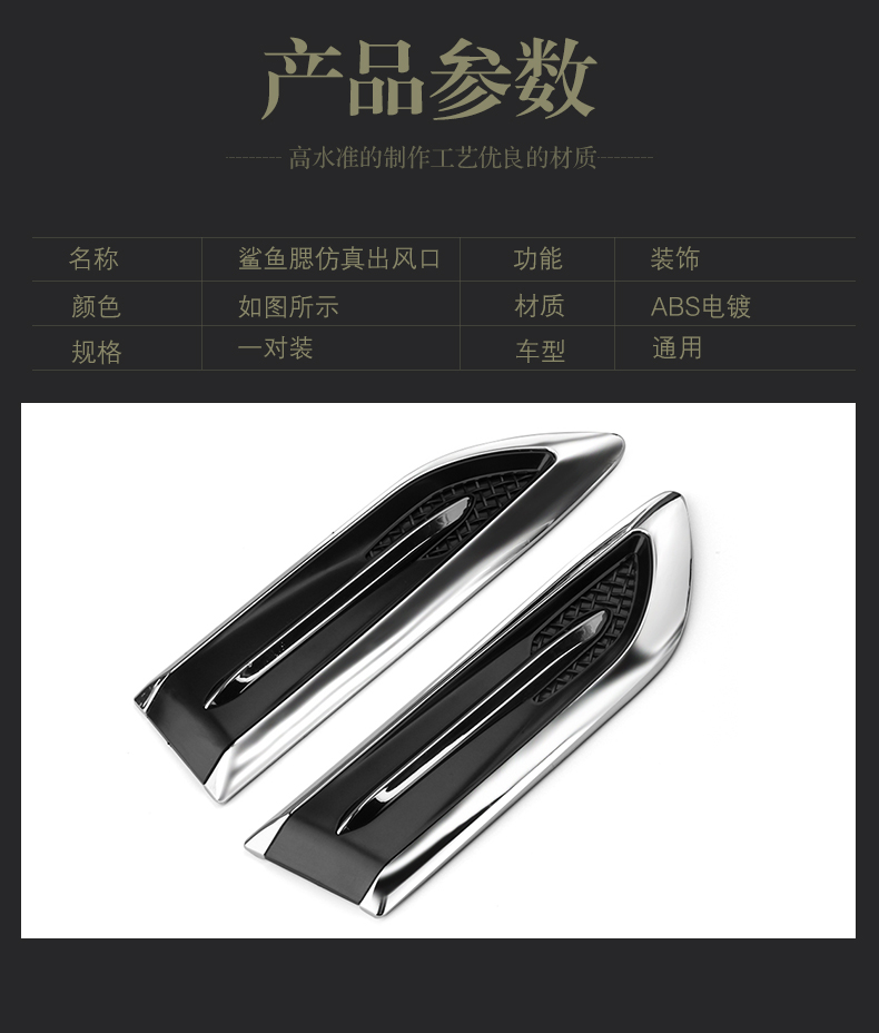 鲨鱼腮仿真出风口 侧风口 引擎盖装饰 通风口 进气 汽车改装车贴