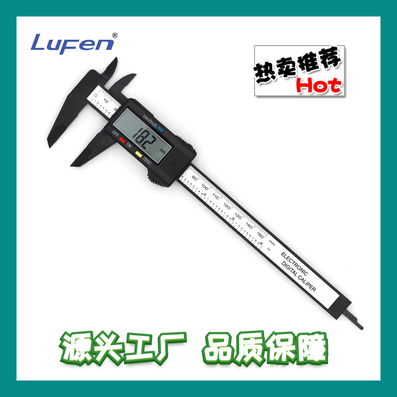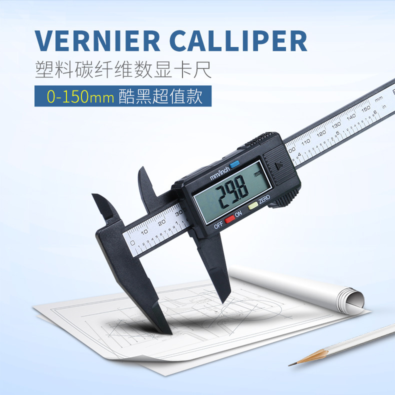 Электронный цифровой штангенциркуль 0-150 мм, пластиковый, в различных вариантах упаковки, черный