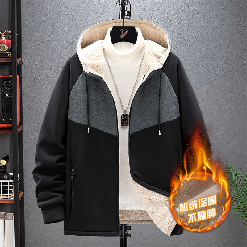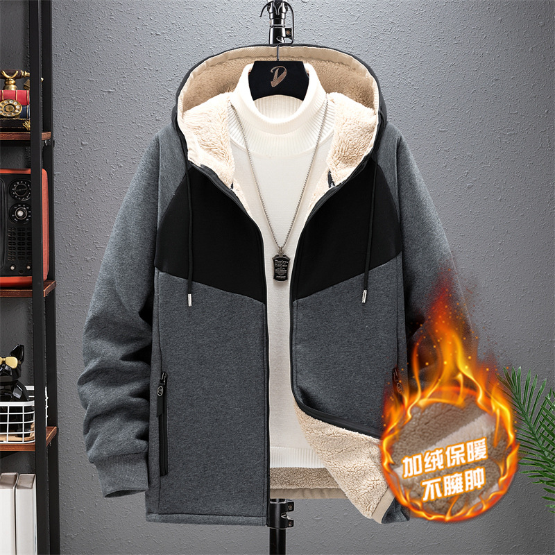 Утолщенный свитер на флисовой подкладке, мужской осенне-зимний Спортивный Повседневный Кардиган с капюшоном, Свободный Топ, теплое пальто больших размеров