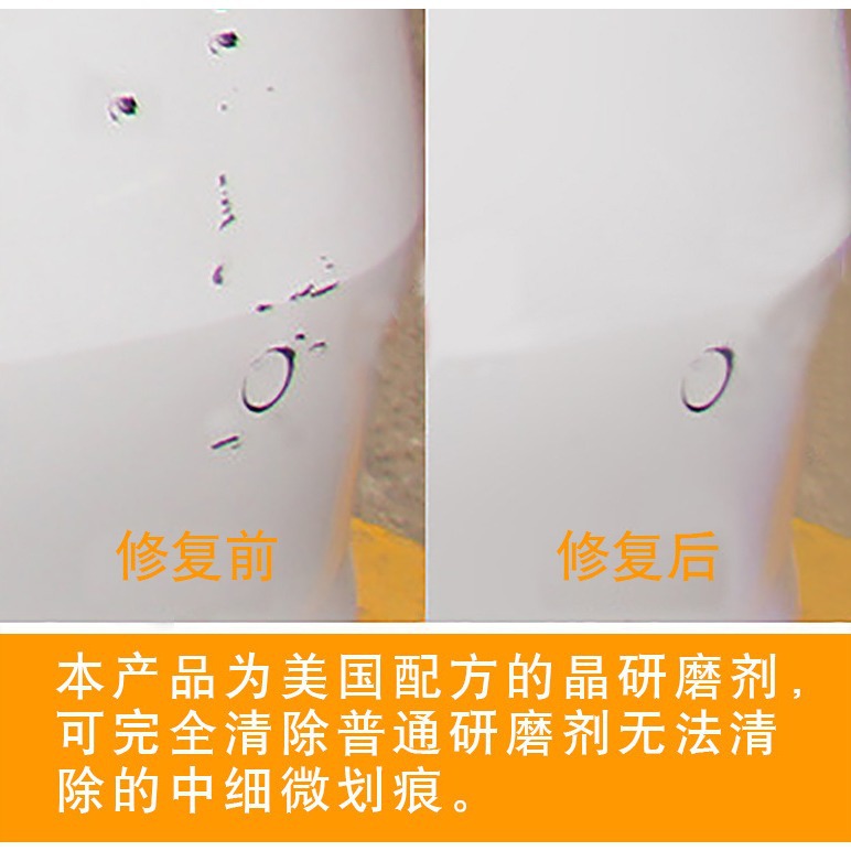 本产品能迅速去除车漆表面轻度划痕,去除树粘、胶质、鸟粪等严重污染,有效治理车漆发乌,发白褪色等氧化现象,集修复,上光保护等多重功效