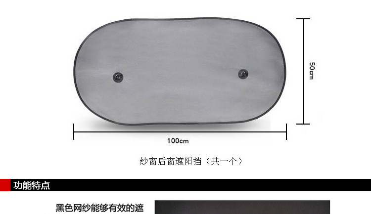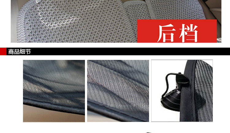 2、网纱后档单装,随时置于玻璃两侧,有效反射及隔绝热能的传导,降低车内温度。