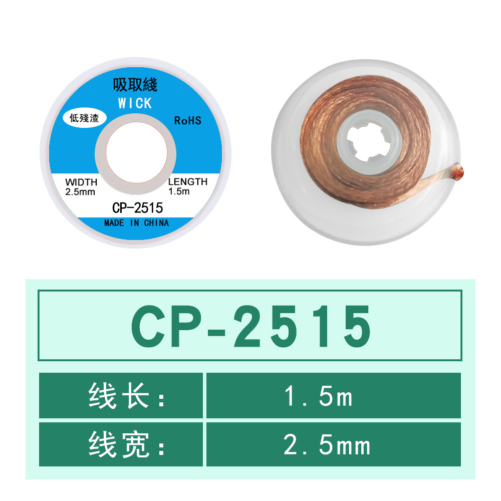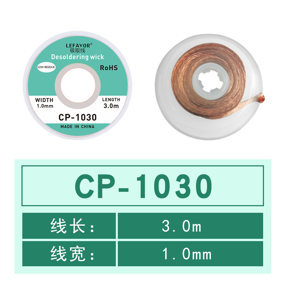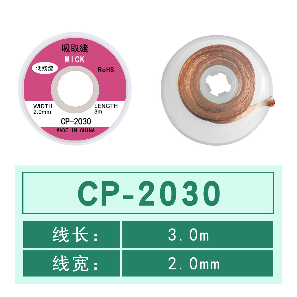 2,用于除锡时吸取多余的焊锡,耐氧化腐蚀,导热性、上锡效果都非常好,吸锡干净。