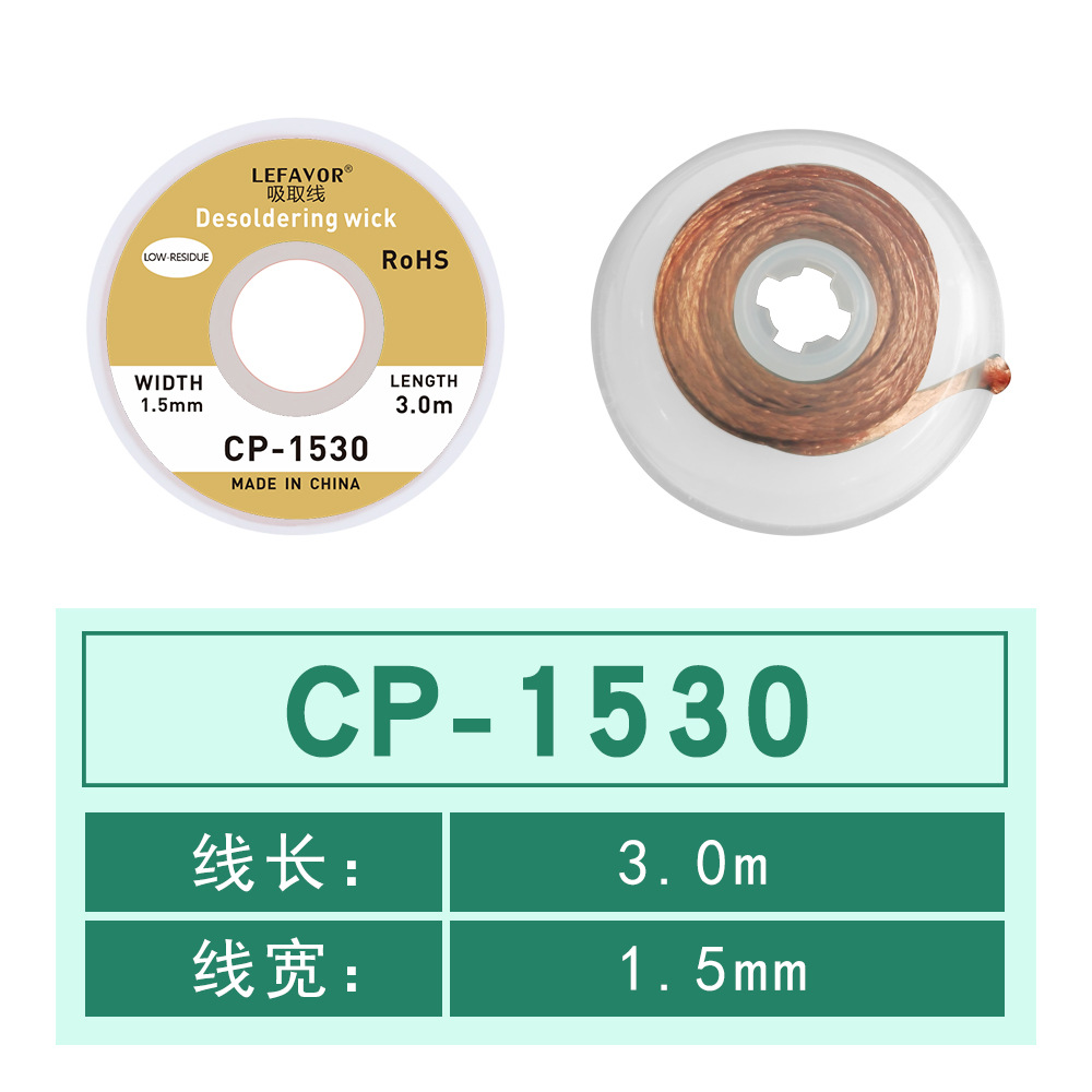 商品用途:采用铜线加特殊化学配方精密编织,非卤素低残渣免清洗吸锡带清理焊盘必备.适用于各类电子,电器,精密仪器仪表.能快速吸锡和大量吸锡.移除多余焊锡专用等等..