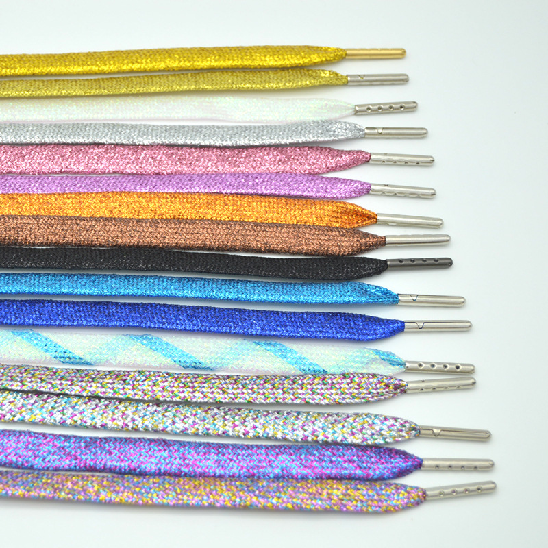 Золото Шелковый блеск шнурки металлический носок шнурки красочные повседневные туфли кроссовки плоские шнурки черный и белый Розовый Зеленый Синий