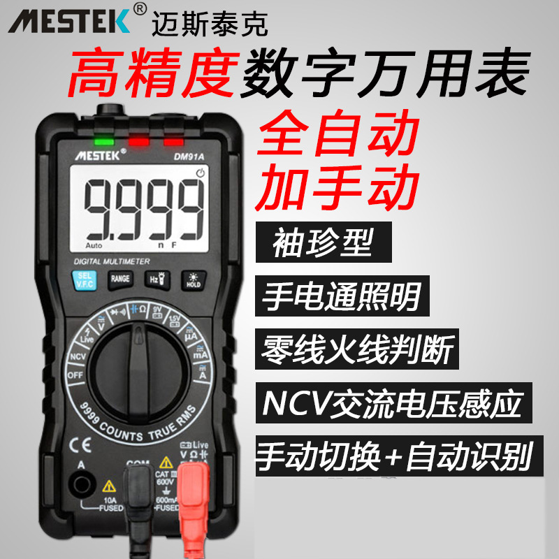 DM91 Высокоточный Многофункциональный цифровой мультиметр Автоматический диапазон Измеритель емкости Карманный цифровой дисплей Электрический Универсальный измеритель