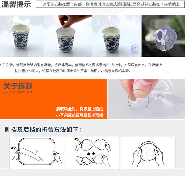 1.吸盘在运输过程中因挤压会变形,把吸盘放在开水中浸泡一会,即可恢复原形。 2.在吸盘上涂点水,吸盘吸力会更好!