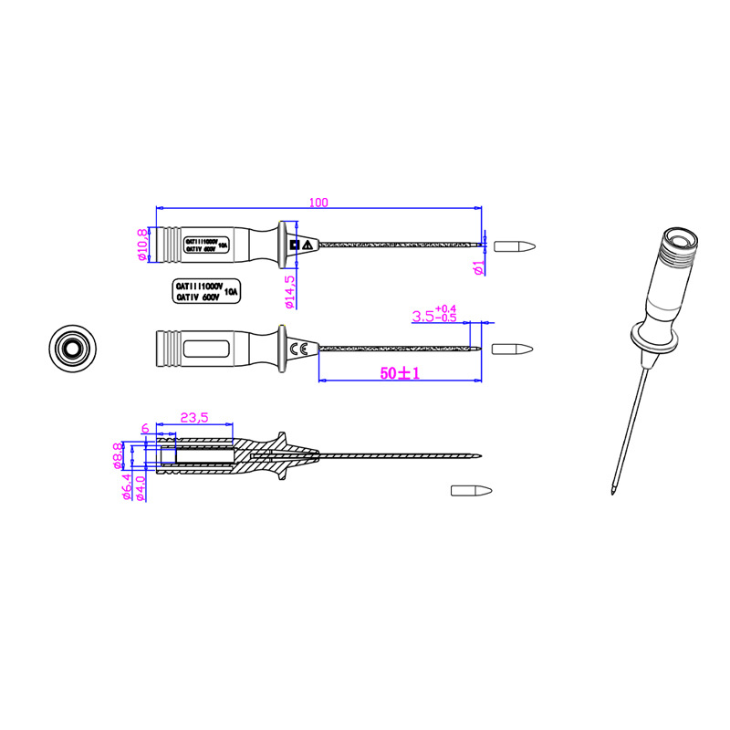 Заводской прямой зонд мультиметра 4 мм банановый разъем с дополнительным наконечником очень тонкий зонд для прокола ручка измерителя теста из нержавеющей стали