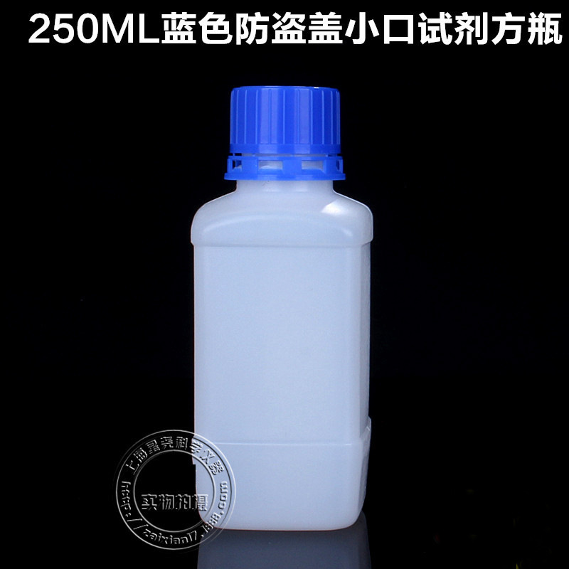 特点:防盗瓶盖,带有内塞,品质稳定,手感好,厚实稳重,档次高。 用途:存放实验溶液,特别适合生物学实验室.适用于化学试剂生产商分装与灌装试剂,公司灌装与分装诊断试剂盒的溶液理想容器。 材质:HDPE(高密度聚乙烯) 参数:容量250ML 瓶盖直径3.6cm 瓶口内径2.30cm 瓶身直径5.8×5.8cm 瓶身高度141cm 包装:250ML/250个箱 颜色:本色 品名:塑料蓝盖试剂瓶 规格:250ml 重量:35g