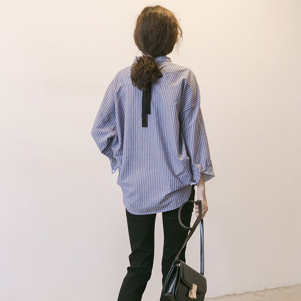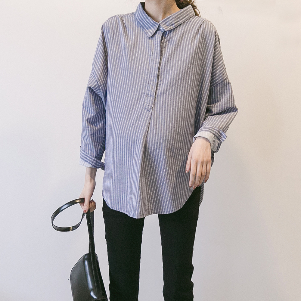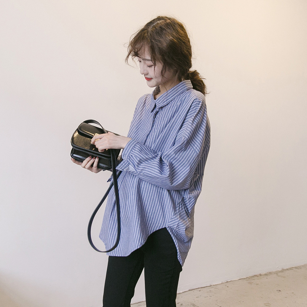 Весной и осенью Новая Одежда для беременных Корейская полосатая рубашка для беременных Свободная Повседневная рубашка больших размеров с лацканами и длинным рукавом Модная мама