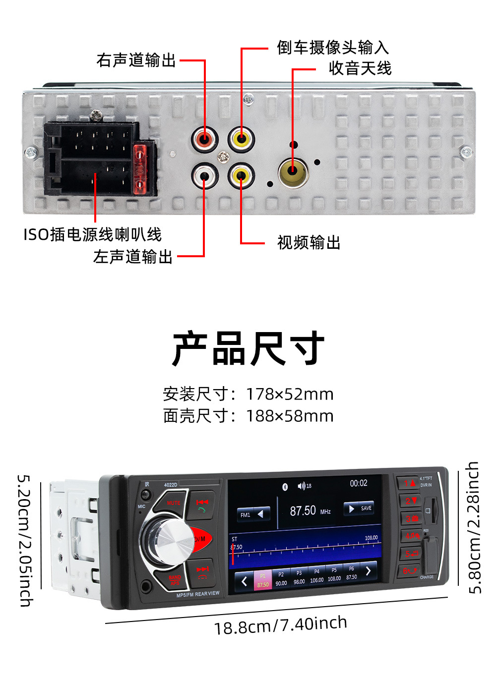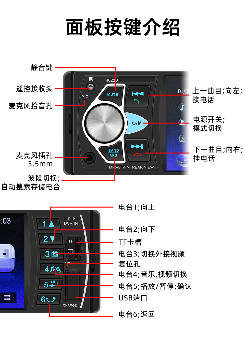 4,1-дюймовый HD большой экран bluetooth громкой связи автомобиль MP5 плеер карта USB диск автомобиль радио задним ходом приоритет