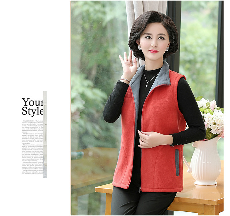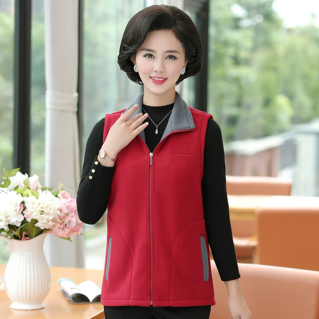 Жилет из Полярного флиса Женский уличный флисовый жилет Осенне-зимний Кардиган для матерей среднего возраста Жилет с поясом Куртка