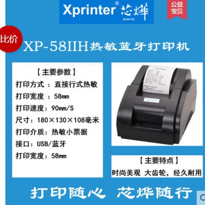 Термопринтер чеков Xinye XP-58IIH 58IIT 58IINT с Bluetooth, 58 мм, для супермаркетов и кассовых аппаратов, для печати чеков на вынос