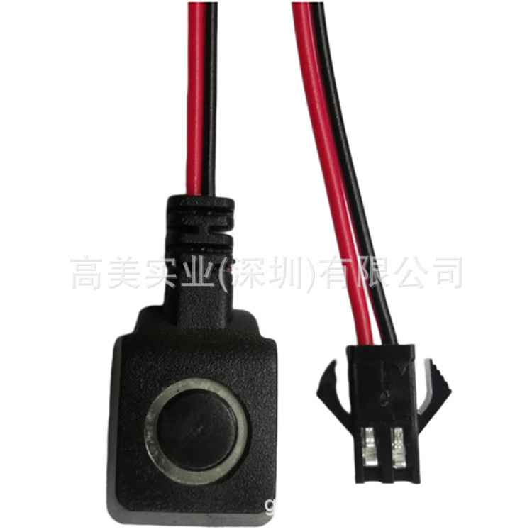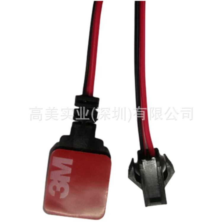 产品长度有330/500/1000/1500/2000/2500/3000MM等多种选择(长度支持订),线材用2468#24红黑并线(颜色支持订制),插头用SM-2P母头(插头支持订制),按键部分是轻触开关注塑成型,按键开关成型部分的规格是长度25MM,宽度15MM,厚度7MM,按键背面贴3M双面胶具体如图示。