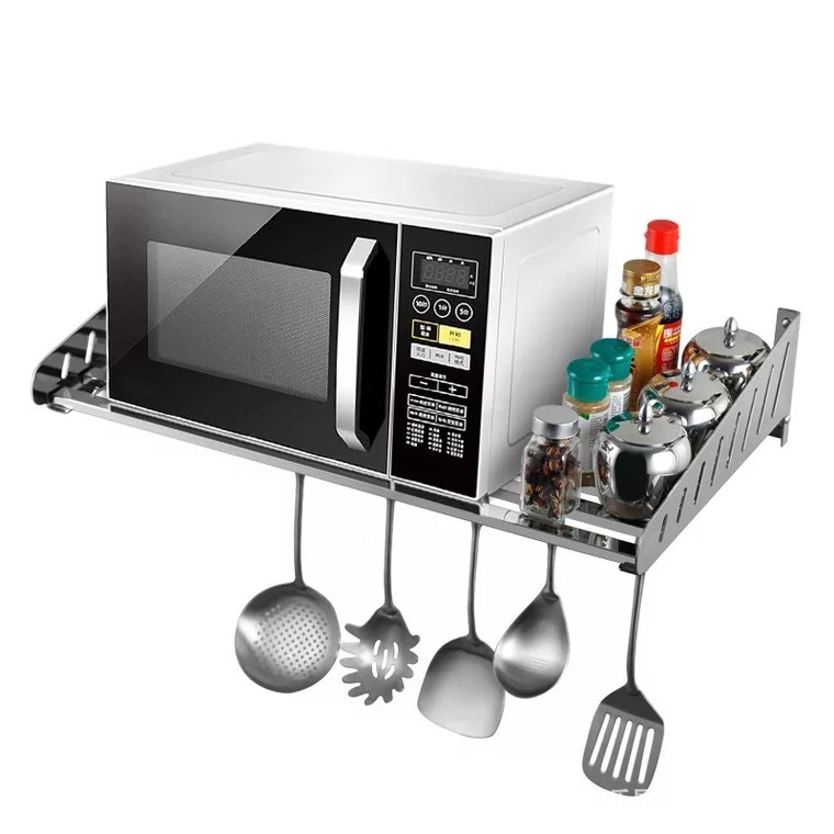 Прямая поставка с фабрики 304 кухонная многофункциональная полка для хранения приправ настенная полка для микроволновой печи из нержавеющей стали
