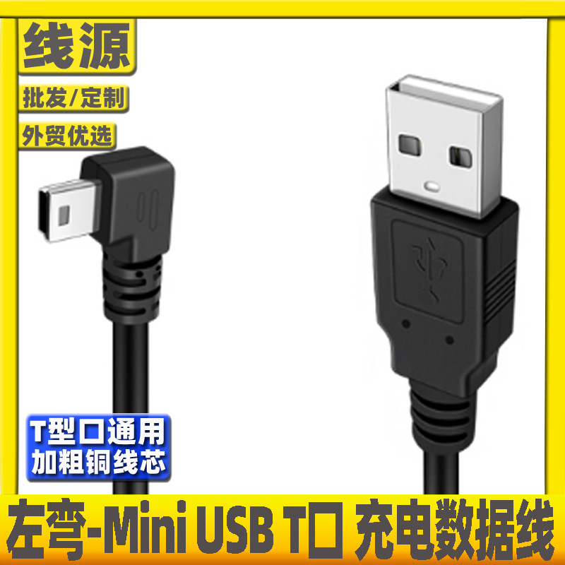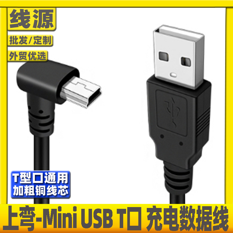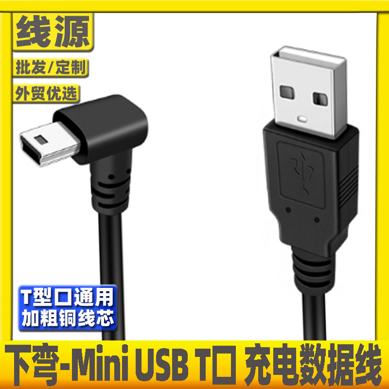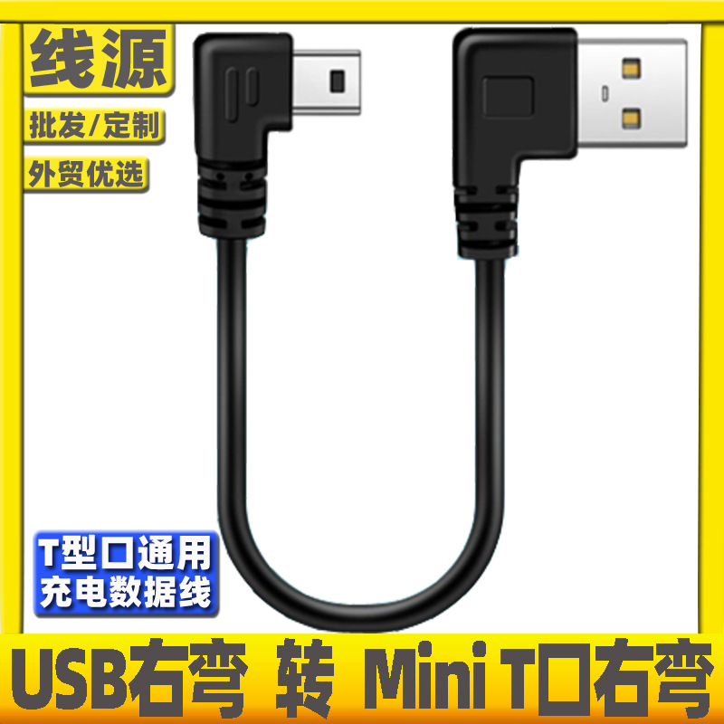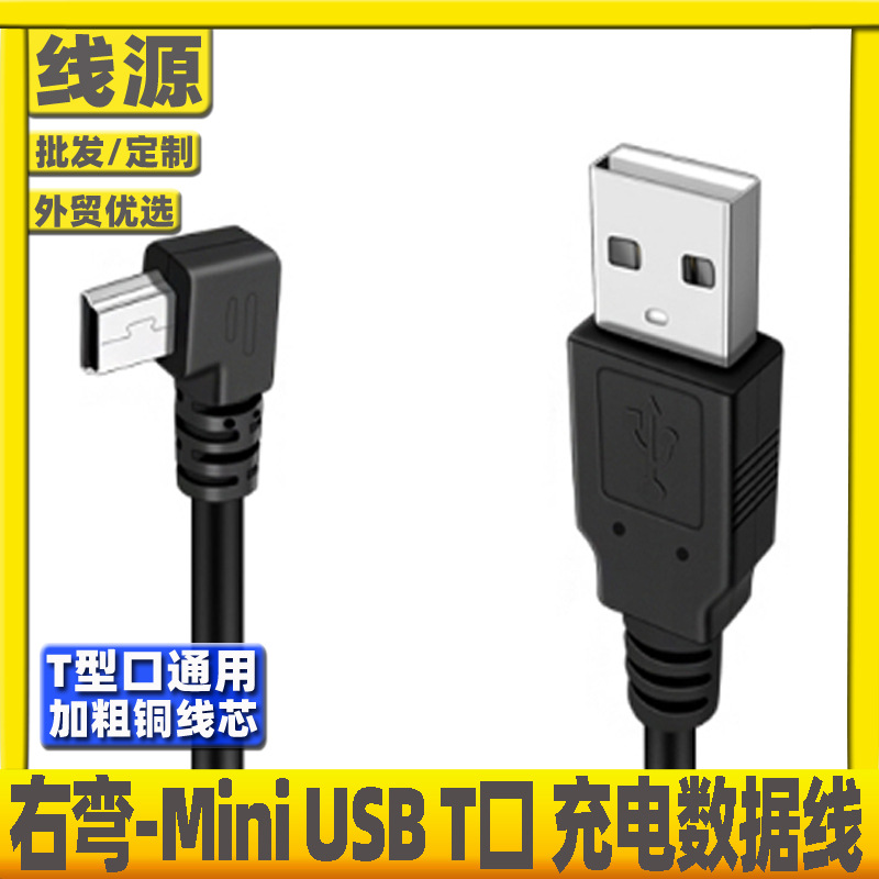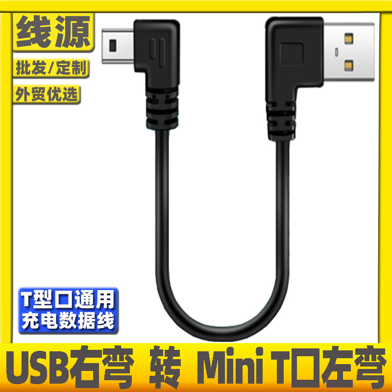 行车记录仪电源线双弯头mini usb数据线梯形t型口改USB接口供电线