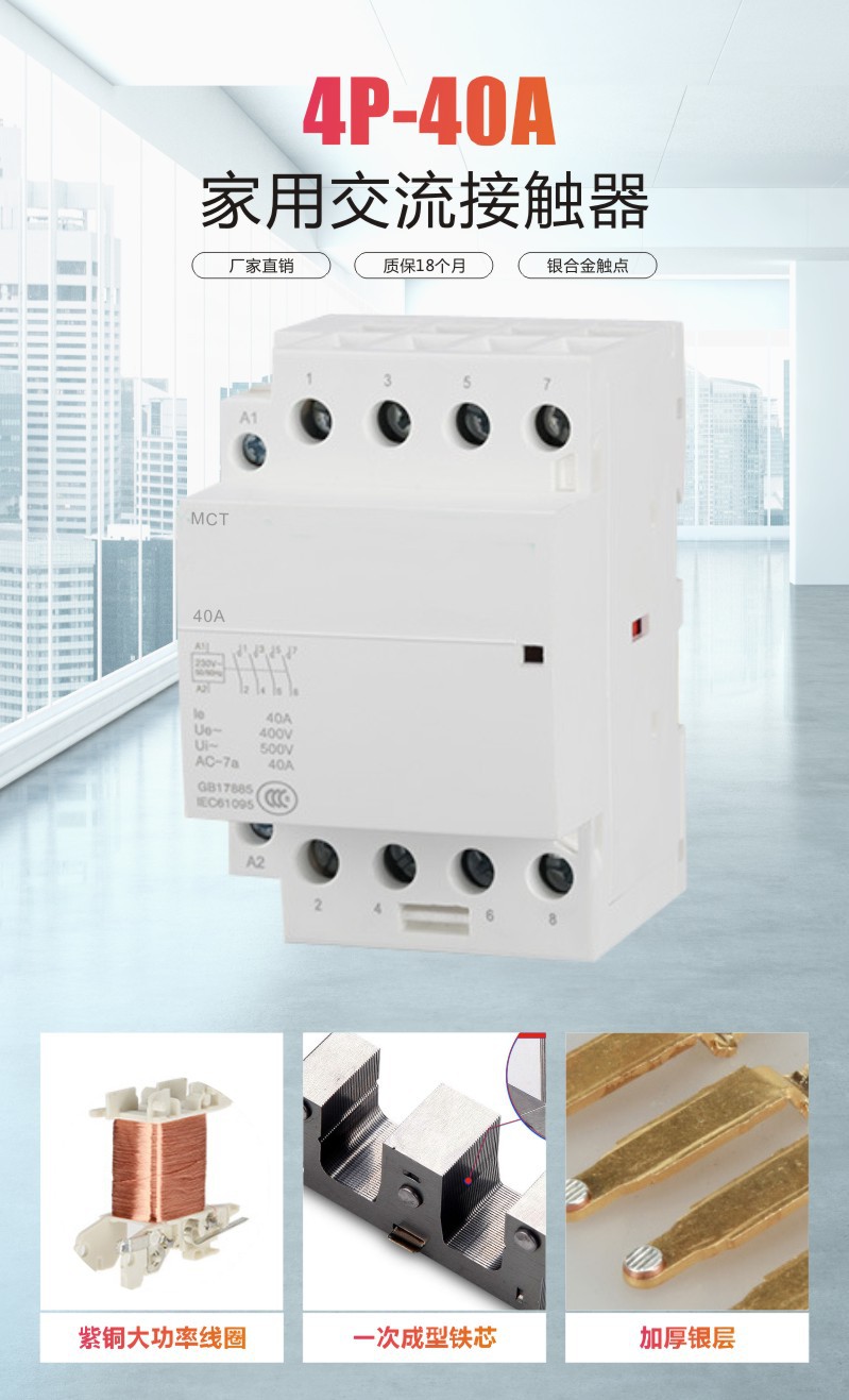 ICT-40A бытовой небольшой контактор переменного тока 4p модульный контактор прямо с завода NCH8-40