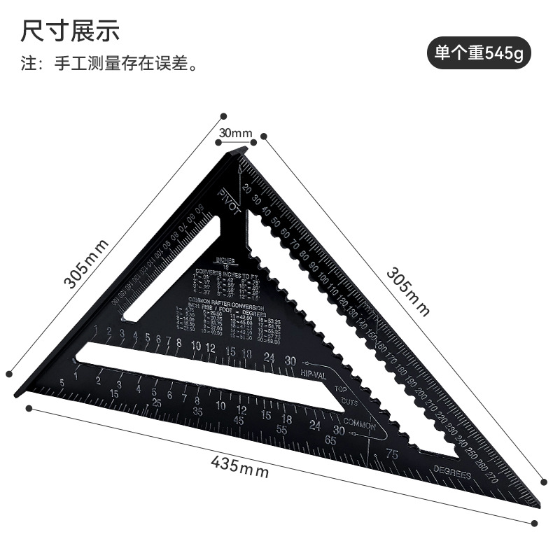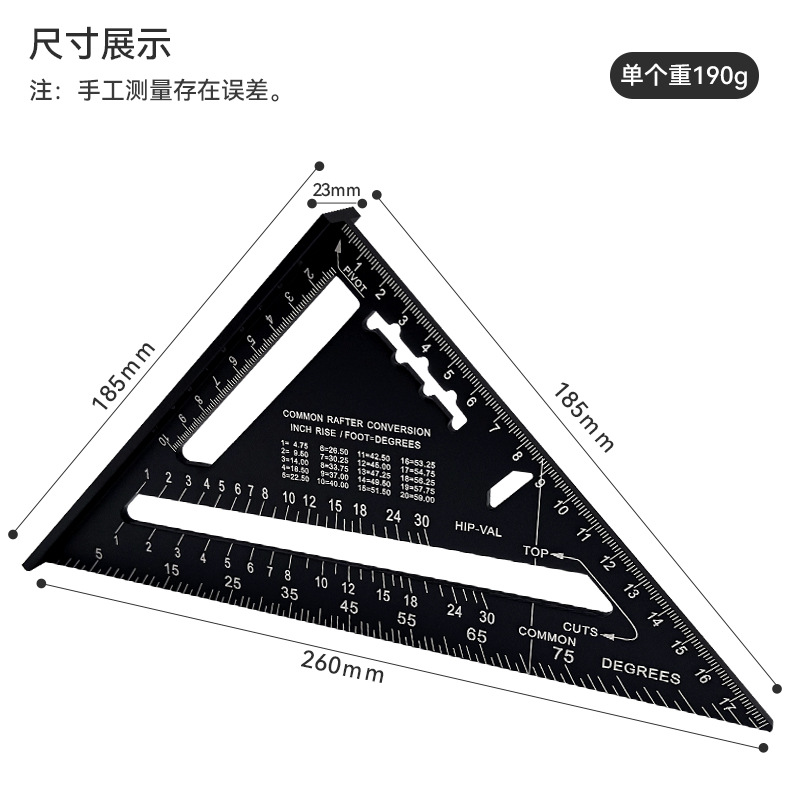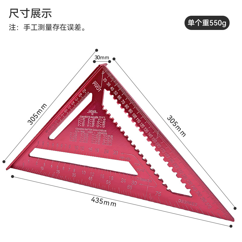 7 дюймов 12 дюймов дюймовый треугольный линейка 90 градусов прямоугольная линейка алюминиевого сплава столярная измерительная линейка прямоугольная