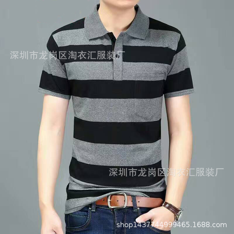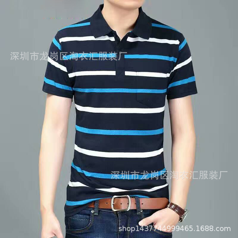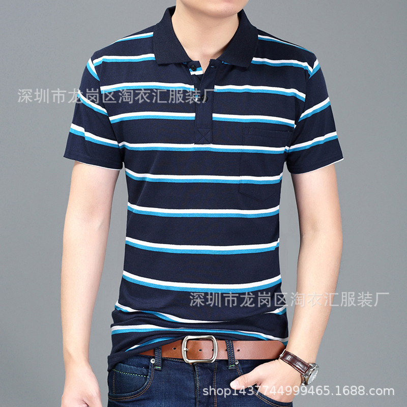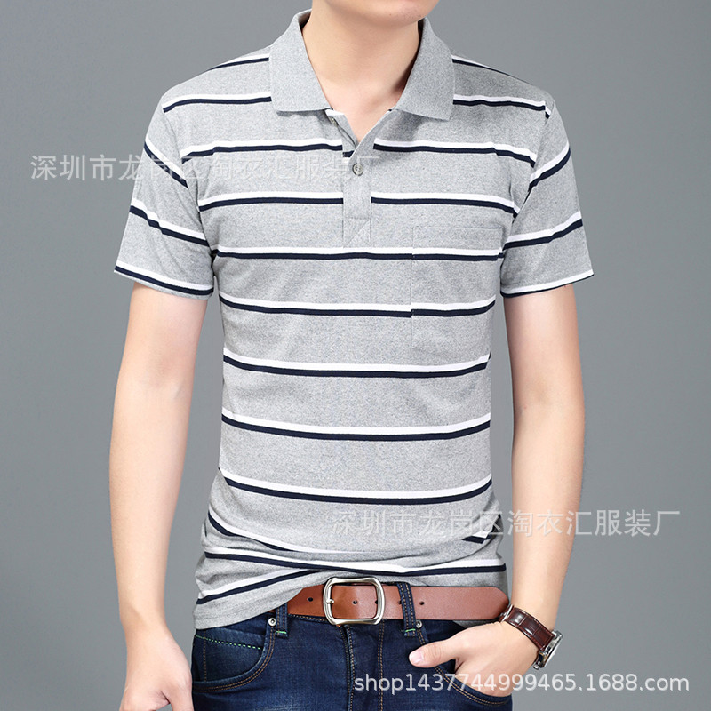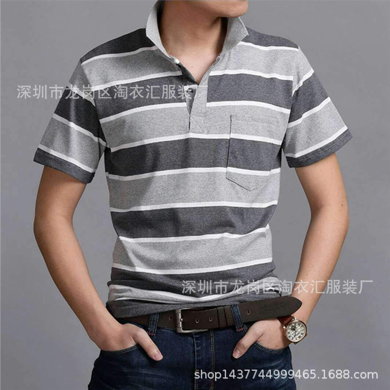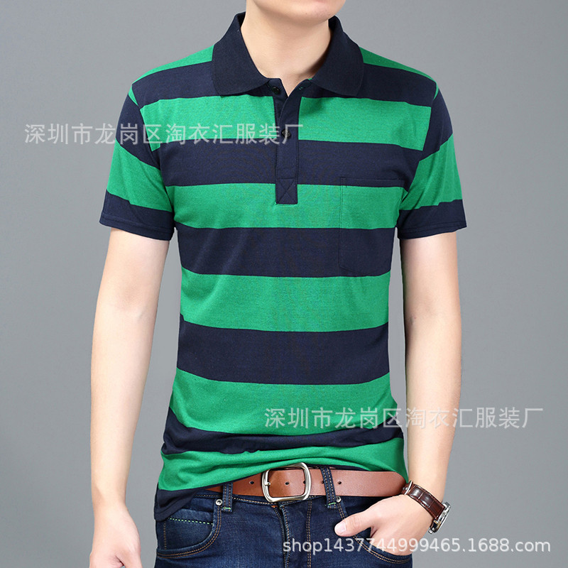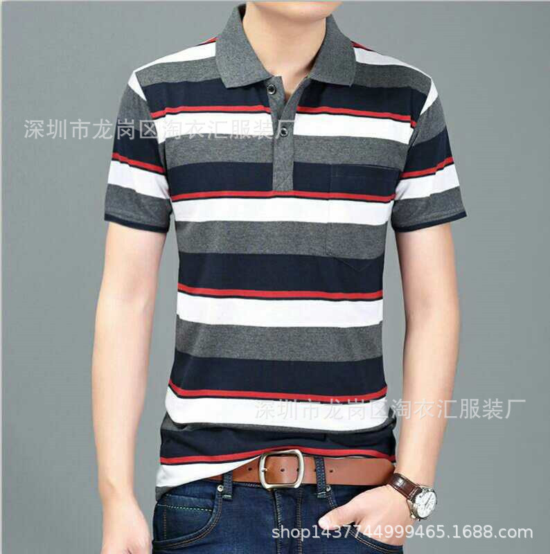 Мужская летняя новая стильная повседневная футболка с полосатыми лацканами и коротким рукавом с карманами и брюками 1638, производитель, оптовая продажа, бесплатная доставка